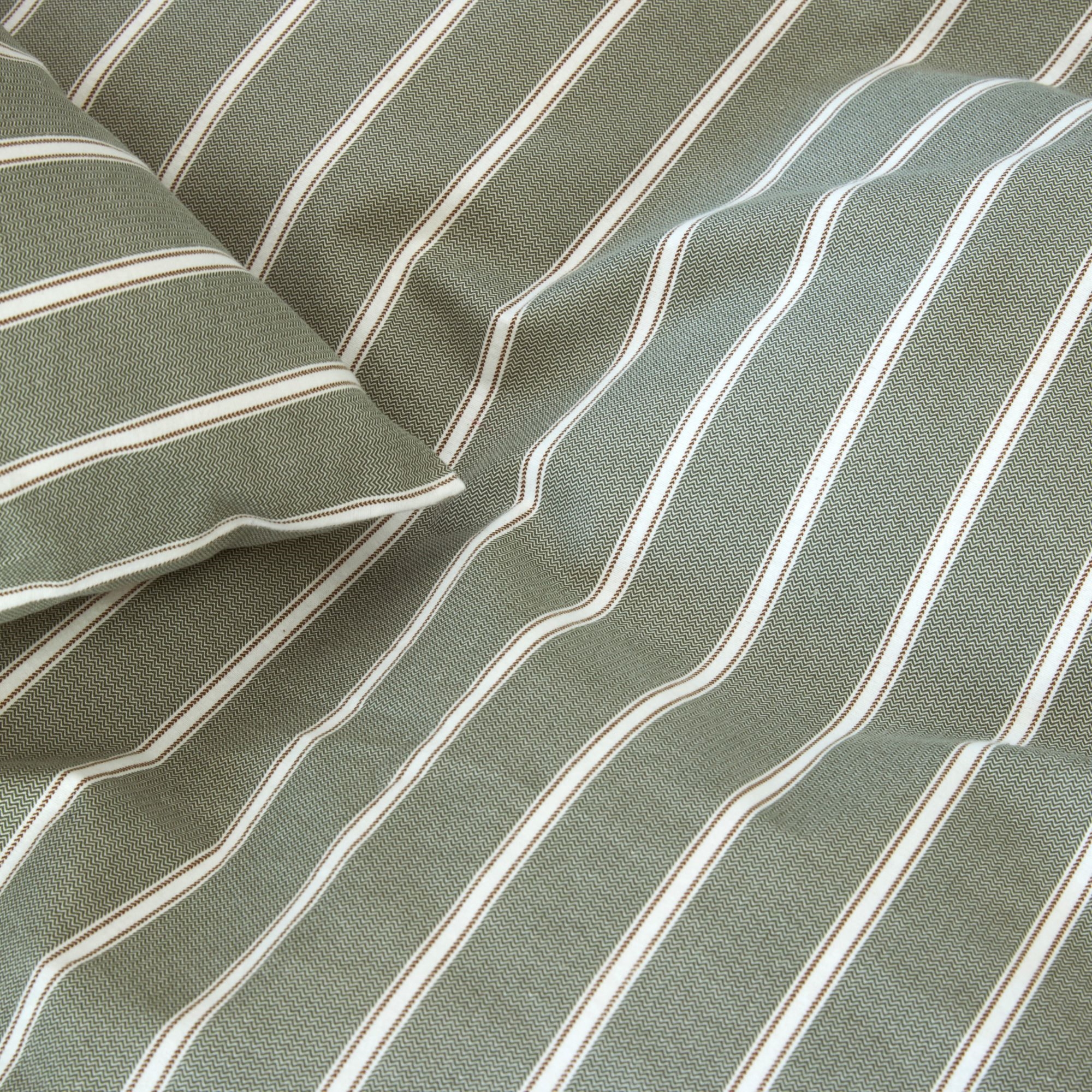 Forside » Sengetøj » Enkelt sengetøj » Ekstra langt sengetøj 140x220 cm Flonel sengetøj 140x220 cm - Grønt stribet sengesæt - 100% bomulds flonel - Henning Høie of Scandinavia sengelinned Spar25% Høie Of Scandinavia 599,95449,95DKKSpar 150,- Få på lager Trustpilot Antal Læg i kurv Se mere fra: Høie Of Scandinavia Artikelnummer: 8372-2 Læs vores sengetøjsguide Se vores store udvalg af lagner Se vores store udvalg af dyner 140x220 Har du spørgsmål til produktet? Åndbart og behageligtEkstra blødt og varmtSlidstærkt bomuld Dynebetræk: 140x220 cm Pudebetræk: 60x63 cm Materiale: 100% bomuldsflonel Vævning: 220TC (Thread count = antal tråde pr. kvadrattomme) Farve: Grøn med striber Design: Henning Brand: Høie of Scandinavia Lukning: Dynebetræk med lynlås, pudebetræk med overlap Vask: 60° Tørretumbling: Ja Tåler strygning: Ja Certificering: EASY CARE behandlet, hvilket betyder det ikke krøller efter vask Certificering: GREEN by STANDARD 100 by OEKO-TEX® (M2AMSTD86). Din garanti for at produktet er fri for sundhedsskadelig kemi. Blødt og lækkert sengesæt produceret i 100% bomuldsflonel. Den unikke fornemmelse af flonel kommer, når du børster overfladen af den fine bomuld. Den får flonel til at opleves som lun og blød. Sengetøjet er af en ekstra fin bomuld, som er kendt for sin blødhed og store slidstyrke. Flonel sengetøj fra Høie er fremstillet af 100% bomuldsflonel, som er kendt for sin bløde, let opkradsede og vamsede overflade. Bomuldsfibrene er børstet på overfladen hvilket skaber en ekstra blød og vamset overflade. Denne overflade giver flonel sengetøjet dets karakteristiske og velkendte blødhed og varme, som er med til at skabe en dejlig lun og behagelig sove oplevelse. Især på kølige nætter er sengetøjet en favorit, da 100% bomuldsflonel er åndbart og samtidig god til at holde på varmen. Sengetøjet er OEKO-TEX certificeret. Det er din garanti for at sengetøjet er testet og fri for skadelige stoffer, desuden er sengetøjet allergivenligt. Høie sengelinned er også Easy Care behandlet, for mindre krøl og bedre facon efter vask. Easy Care gør dit sengetøj ekstra komfortabelt og let at stryge. Frisk dit soveværelse op med dette smukke og luksuriøse sengesæt. Udnyt samtidig chancen for at øge din søvnkomfort ved at tilføje et nyt, blødt kvalitetslagen. Du finder vores store sortiment af kvalitets lagner her Høie er et Skandinavisk brand som står for tradition forenet med nytænkning. Firmaet har eksisteret siden 1850 og har gennem årene været med til at forme og udvikle Skandinavisk tekstil og designs. Sengetøj fra Høie, er hverdags luksus som alle fortjener. Tilbage til Ekstra langt sengetøj 140x220 cm