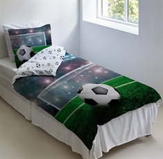 Forside » Sengetøj » Børne sengetøj » Børne sengetøj 140x200 cm Fodbold sengetøj - 140x200 cm - Stadion - Fodbold dynebetræk med vendbart design - 100% bomulds sengesæt Licens 169,95DKK På lager Trustpilot Antal Læg i kurv Se mere fra: Licens Artikelnummer: 1850-1 Læs vores sengetøjsguide Se vores store udvalg af lagner Se vores store udvalg af dyner 140x200 Har du spørgsmål til produktet? Høj åndbarhed og kvalitetBlødt og lækkert bomuldOEKO-TEX® certificeret Dynebetræk: 140x200 cm Pudebetræk: 60x63 cm Materiale: 100% blød bomuld Farve: Hvid Motiv: Vendbart design - forside med fodbold motiv af bold og stadion, bagside med bolde Lukning: Dyne med knapper og pudebetræk med overlap Vask: 60° Tørretumbling: Ja Tåler strygning: Ja Certificering: STANDARD 100 by OEKO-TEX® (11-67789 Shirley). Din garanti for at produktet er fri for sundhedsskadelig kemi. Sengetøj med et sejt motiv af et fuldt pakket fodbold stadion og en fin bagside med motiv af små fodbolde på en hvid baggrund. Det bløde sengesæt produceret i 100% bomuld er både åndbart og absorberende, og med god sovekomfort. Et slidstærkt bomulds børnesengesæt, som gør børneværelset lidt mere spændende. Flot og lækkert sengetøj til det fodbold glade barn. Sengesættet er vendbart, med forskellige motiver for og bag. På den ene side af sengetøjet, er der motiv af en fodbold, der ligger klar til et ordentligt spark mod mål. Vender du sættet om, er der all-over print af fodbolde på en hvid baggrund. Sengesættet er produceret i 100% blød bomuld som gør sættet slidestærkt og med høj åndbarhed. Den rene bomuldskvalitet giver et lækkert og blødt sengesæt, der er med til at fremme en sovekomfort for barnet. Bomuldssengetøj kan vaskes ved 60° i vaskemaskinen, som er også et med til at holde et et højt hygiejne niveau. Sengetøjet er yderligere fremstillet med OEKO-TEX certificeret, hvilke er din garanti for at sættet er fri for skadelig kemi. Gå på udkig efter favoritterne og meget mere, i vores store udvalg af tilbehør til børneuniverset For barnet bør sengen være et trygt sted og alle elementerne skal til sammen skabe bløde og dejlige omgivelser for barnet at finde ro i. Brug derfor gerne barnets interesser, til at skabe et trygt soverum for barnet. Hos os kan du finde et stort udvalg af tilbehør til sengen og børneværelset, lige fra lagner til dyner, puder, sengetøj og meget mere, og massere af produkter med alle børnenes favoritter på. Alt sammen elementer som kan være med til at skabe det rette sove miljø og værelse til dit barn. Her kan du finde lækre og bløde kvalitets lagner Tilbage til Børne sengetøj 140x200 cm