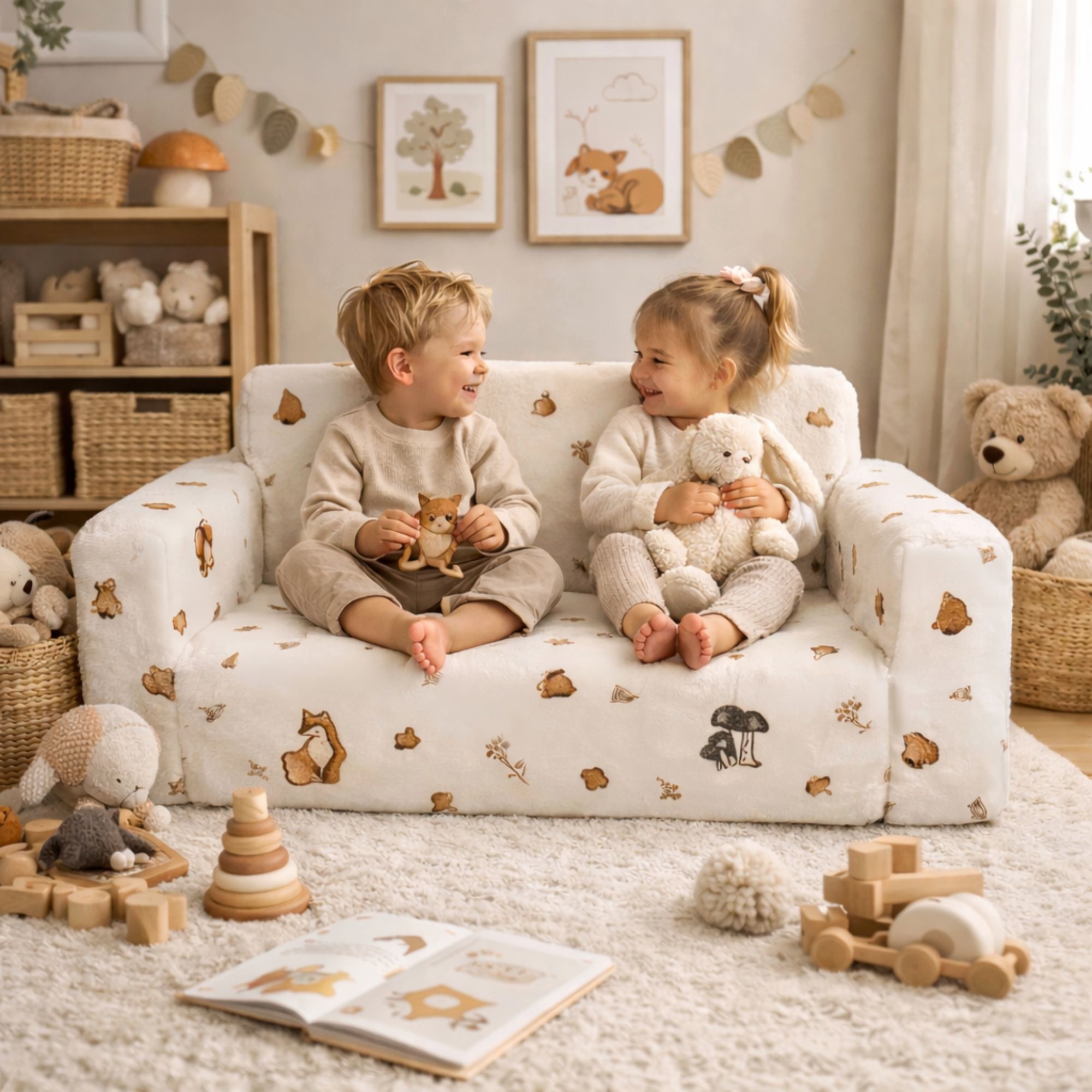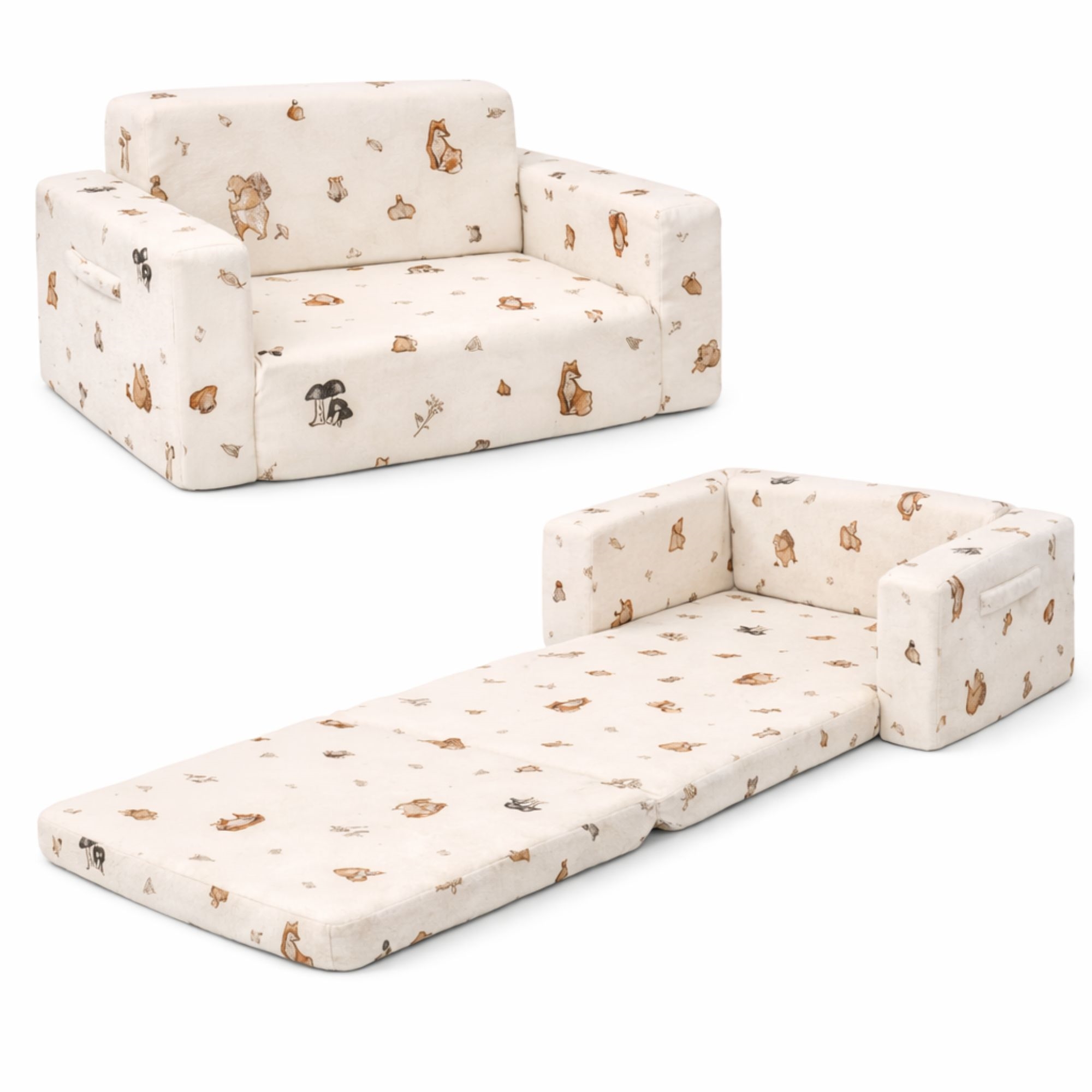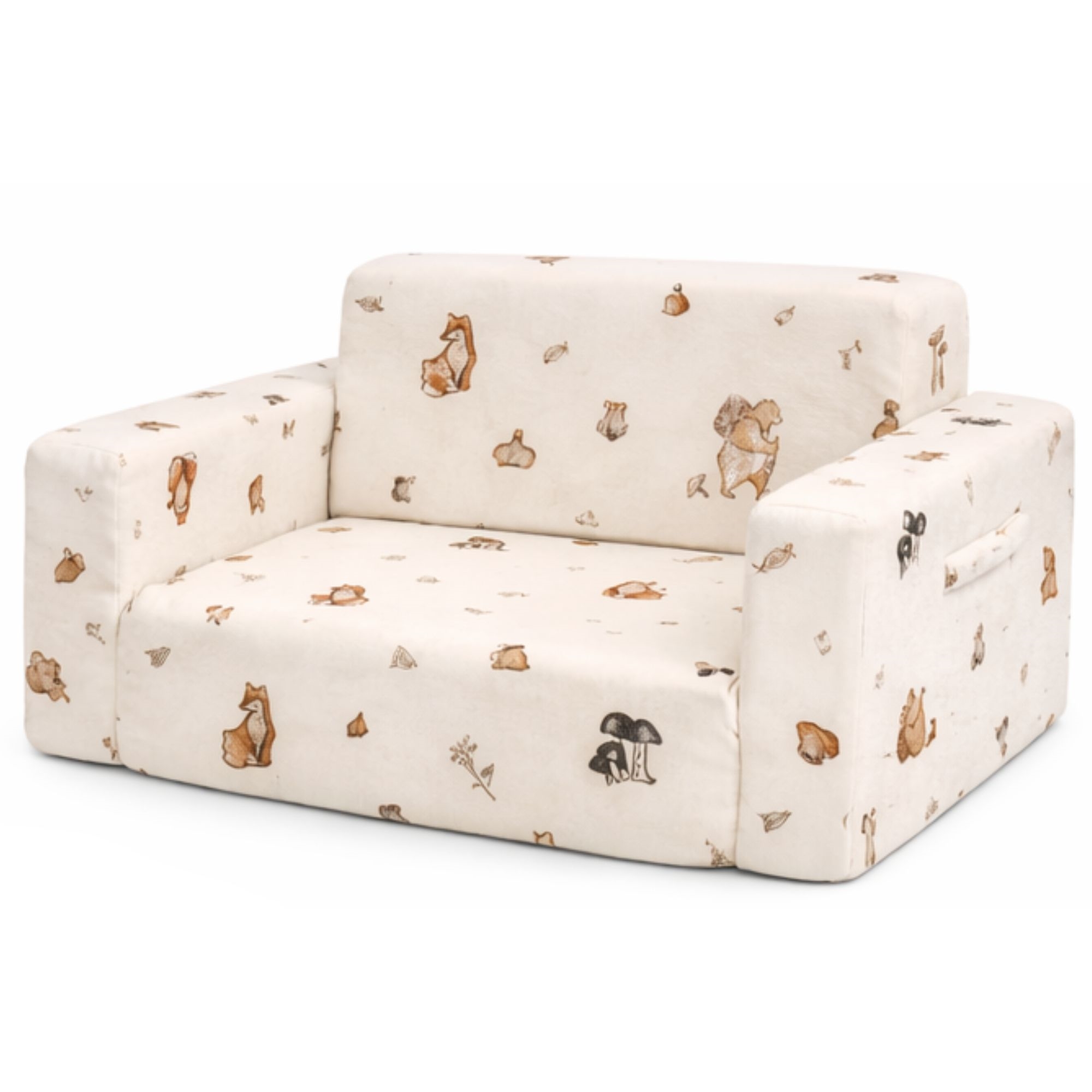Foldesofa til børn - blød og hyggelig fold ud børnesofa med skovens dyr
