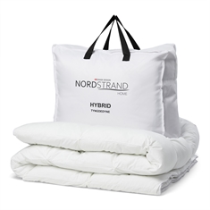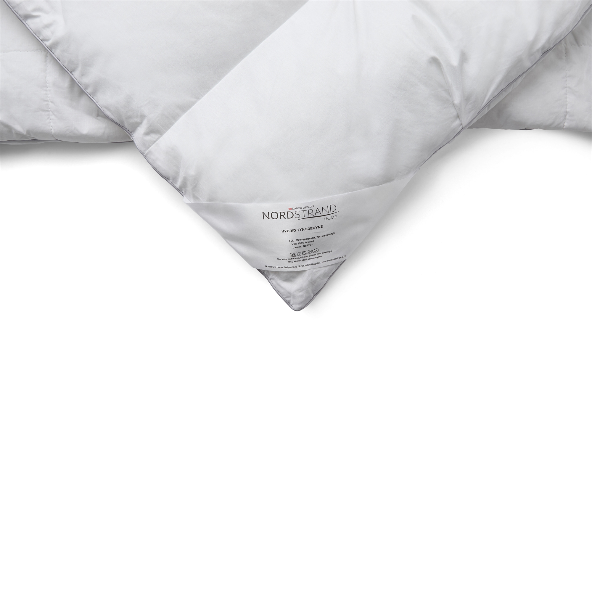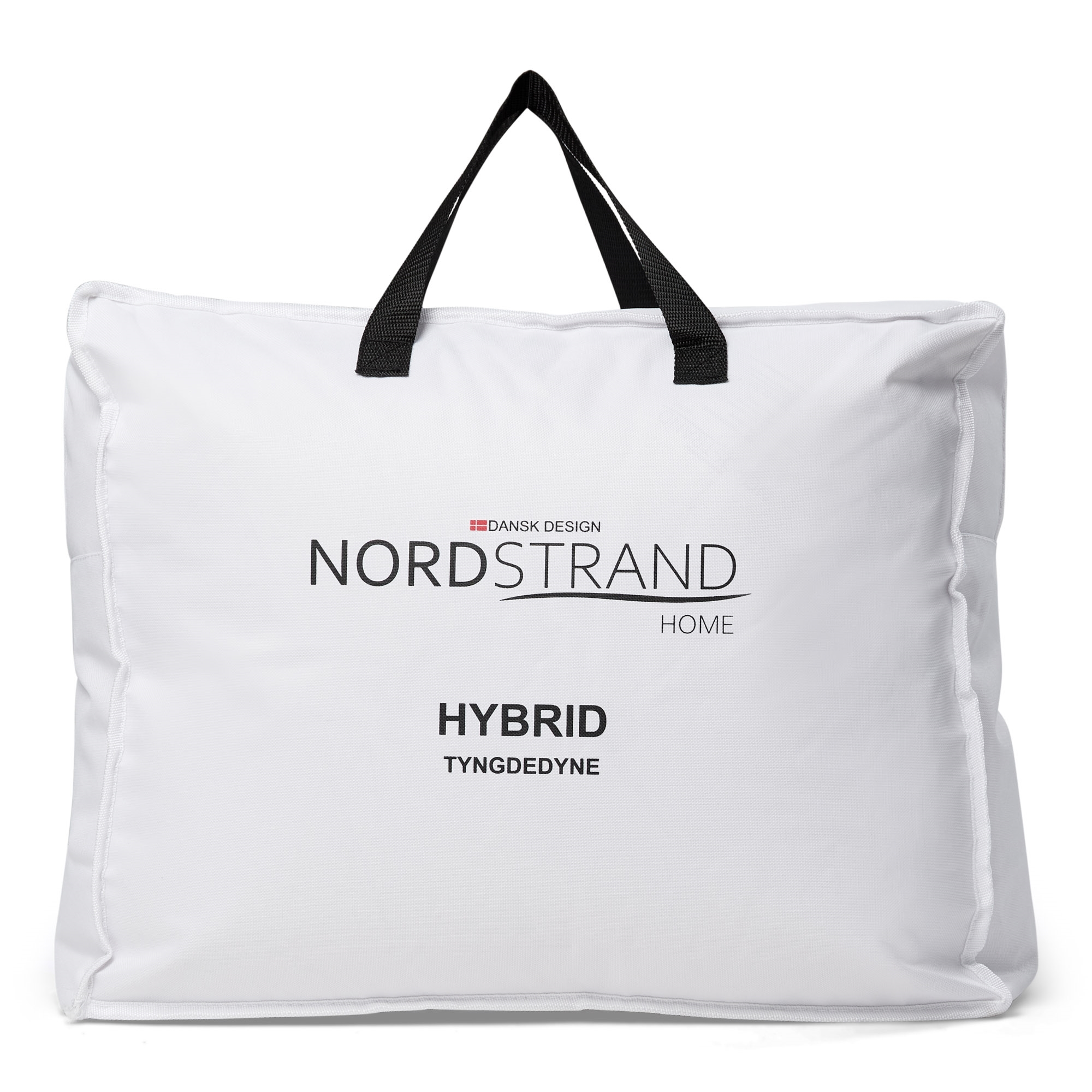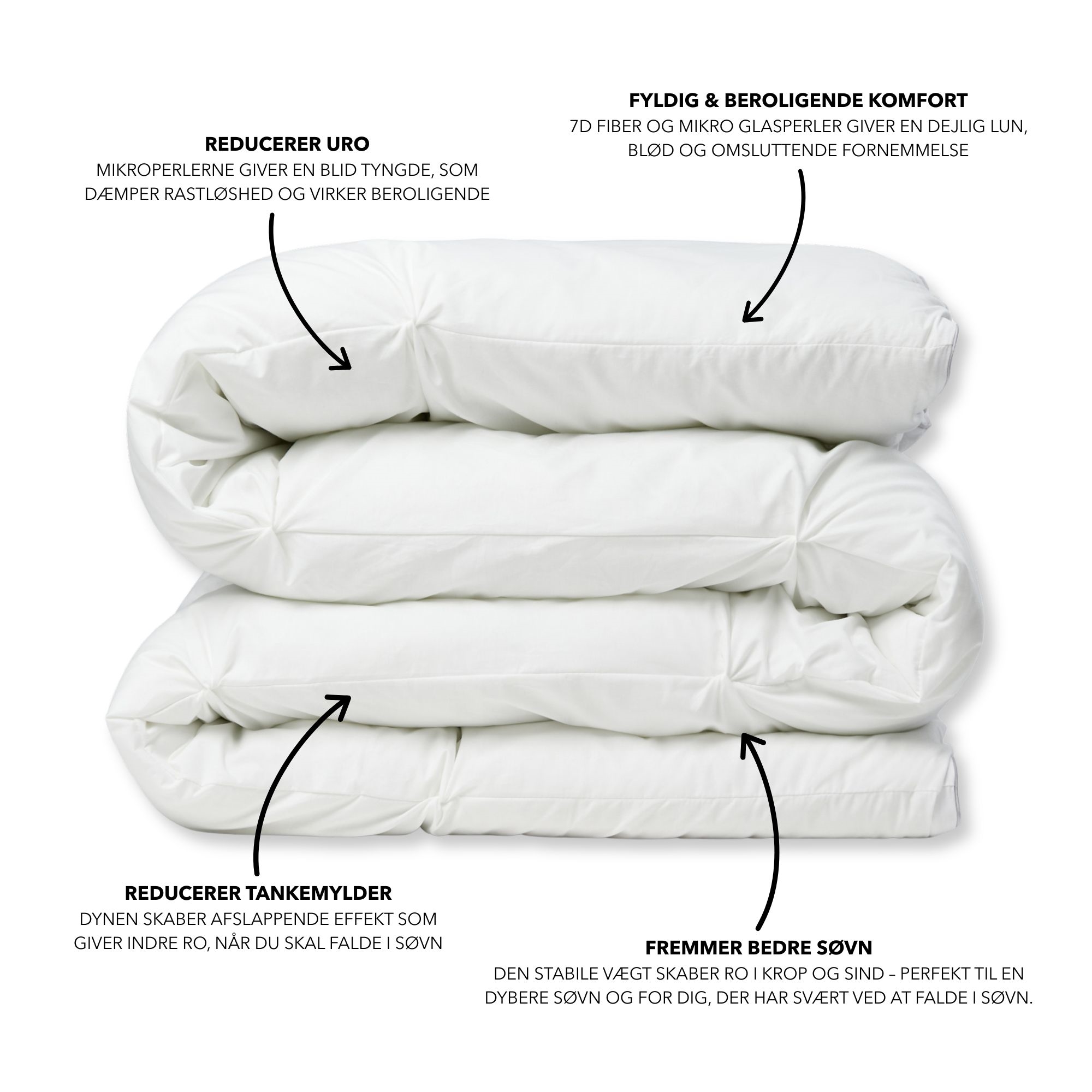 En helårsdyne sammensat af blød 7D fiber og mikro glasperler, med et lækkert 100% bomulds bolster. Hvert af de 3 materialer har egenskaber, som tilsammen skaber en dyne der opfylder et behov for ro, komfort og varme, som ikke kan findes hos andre typer af dyner. Hybriddynen er et unikt og nyskabende element til din søvn, som nedsætter søvnforstyrrelser, skaber større kropslig ro og giver dig mulighed for en bedre søvn. Med hybriddynen skabes nu et ekstra niveau - tyngden kombineres med en lækker blød fiberdyne, og der skabes nu også en dejlig lun nattesøvn og en høj komfort.
