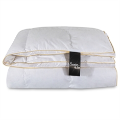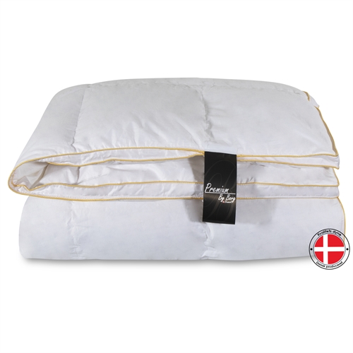 Forside » Dyner » Enkelt dyner » Enkelt dyne 140x200 cm Gåsedunsdyne 140x200cm - Luksus helårsdyne med gåsedun - Premium By Borg - Gulddynen Spar65% Norvigroup 4.899,951.695,00DKKSpar 3.205,- Gratis fragt på denne varePå lager Trustpilot Antal Læg i kurv Se mere fra: Norvigroup Artikelnummer: 525-1 Læs vores dyneguide Læs om vedligeholdelse af dyner og puder Se vores store udvalg af puder Har du spørgsmål til produktet? Gåsedunsdyne - Gulddynen Bæreevne: Over 12Produceret i Danmark Størrelse: 140x200 cm Type: Helårs lun Fyld: 90% Nye hvide Europæiske gåsedun Brand: Premium By Borg - Gulddynen Produceret i: Danmark Fyldvægt: 385g Bæreevne: Over 12 (Gammel målemetode) Bæreevne: 800 (Ny målemetode) Bolster: 100% Bomuldssatin 80/80 (Ekstra fint og blødt) Konstruktion: 5x7 Kassettedyne med panelkant Vask: 60° (Vigtigt at anvende Enzymfrit vaskemiddel) Tørretumbling: Tørretumbles med tørrebolde Garanti: 10 år Certificering: EN12934-normen -Klasse 1 dun + EN 12130-normen Certificering: NOMITE - Fri for husstøvmider Certificering: Downafresh - 100% rene dun Certificering: Down pass - Højeste dyreetiske forhold Certificering: STANDARD 100 by OEKO-TEX® (1176-194 DTI) Se alle vores hovedpuder her Eksklusiv helårsdyne med gåsedun -fra danske Quilts of Denmark. En dejlig lun helårsdyne der passer til de flestes behov. Gåsedun er en af de mest populære duntyper i Danmark og med god grund, da gåsedun er en let type dun som holder rigtig godt på varmen. Dynen er syet i 5x7 kassetter, således at dunene fordeler sig jævnt i dynen og isolerer uden kuldebroer. Denne helårsdyne er syet med 3 cm. panelkant, således at de fyldige og lette dun isolerer helt ud til dynens kant, dette optimerer udnyttelsen af varmen fra de eksklusive gåsedun. Dynen har en bæreevne på over 12, hvilket er et godt udtryk for dynens kvalitet. Den høje bæreevne er samtidig med til at lade kroppen ånde natten igennem. Bolstret er af 100% blødt og lækkert bomuldssatin, som er så tætvævet at husstøvmider ikke kan trænge igennem. Se vores store udvalg af sengetøj i 140x200 cm her Premium By Borg sikrer dig lækre gåsedunsdyner, som er produceret efter høje krav og standarder. Dynerne kommer med en panelkant så fyldet fordeles jævnt og varmen fra de eksklusive gåsedun udnyttes bedst muligt. Alle fjer er inden produktion blevet vasket, varmebehandlet og støvet af og kun de bedste dun og vår bliver brugt i produktionen. Tilbage til Enkelt dyne 140x200 cm