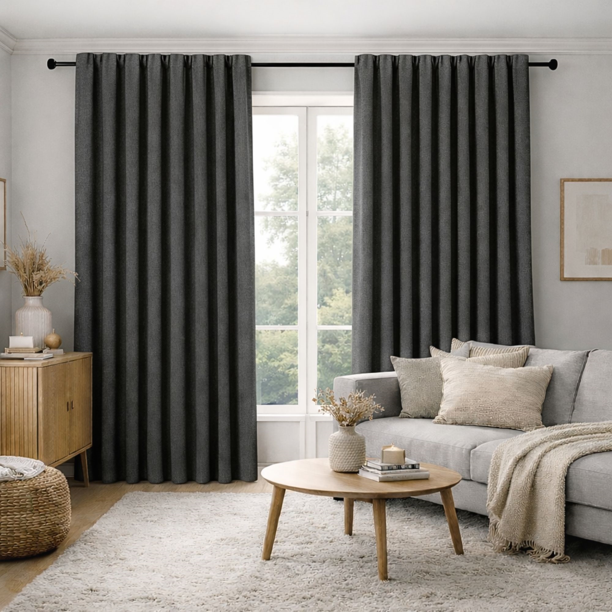 Gardin - 1 stk. færdigsyet gardin 140x175 cm - Antracitgrå - Tykt gardin / lysdæmpende gardin - Nordstrand Home gardinlængder med rynkebånd