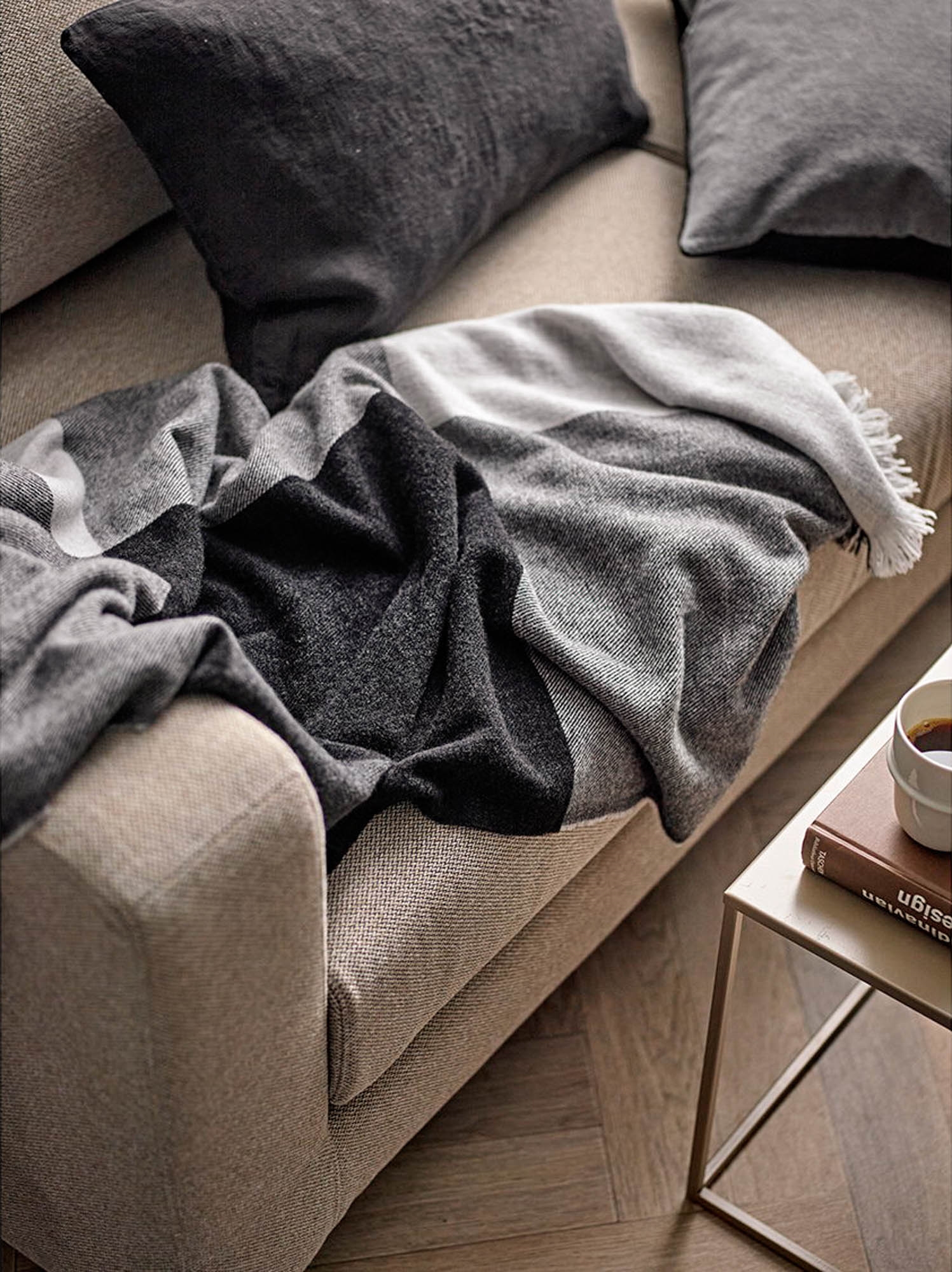 Svøb dig i en skøn plaid af 85 % merino og 15 % cashmere – to lækre typer uld, der i forening sikrer, at du holder varmen. Det luksuriøse tæppe med klassiske store tern i farvenuancer, der komplementerer hinanden, er både diskret og sofistikeret. Mindsettet er "jo mindre, jo bedre", hvor ting med holdbar værdi og kvalitet spiller en central rolle. Med sin underspillede tilgang til farve og det enkle look, der passer til alt, bliver denne plaid hurtigt uundværlig. Merino-plaiden er fremstillet af de fineste merino-uldfibre, som sammen med den lækre kashmiruld giver et meget blødt uldstof.