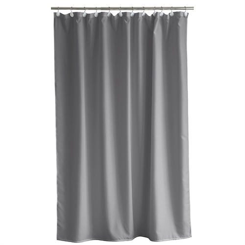 180 x 200 cm 100 % polyester Vandafvisende overflade 12 ringe med hulbredde 1 cm i toppen Gummibånd i opsyning i bunden