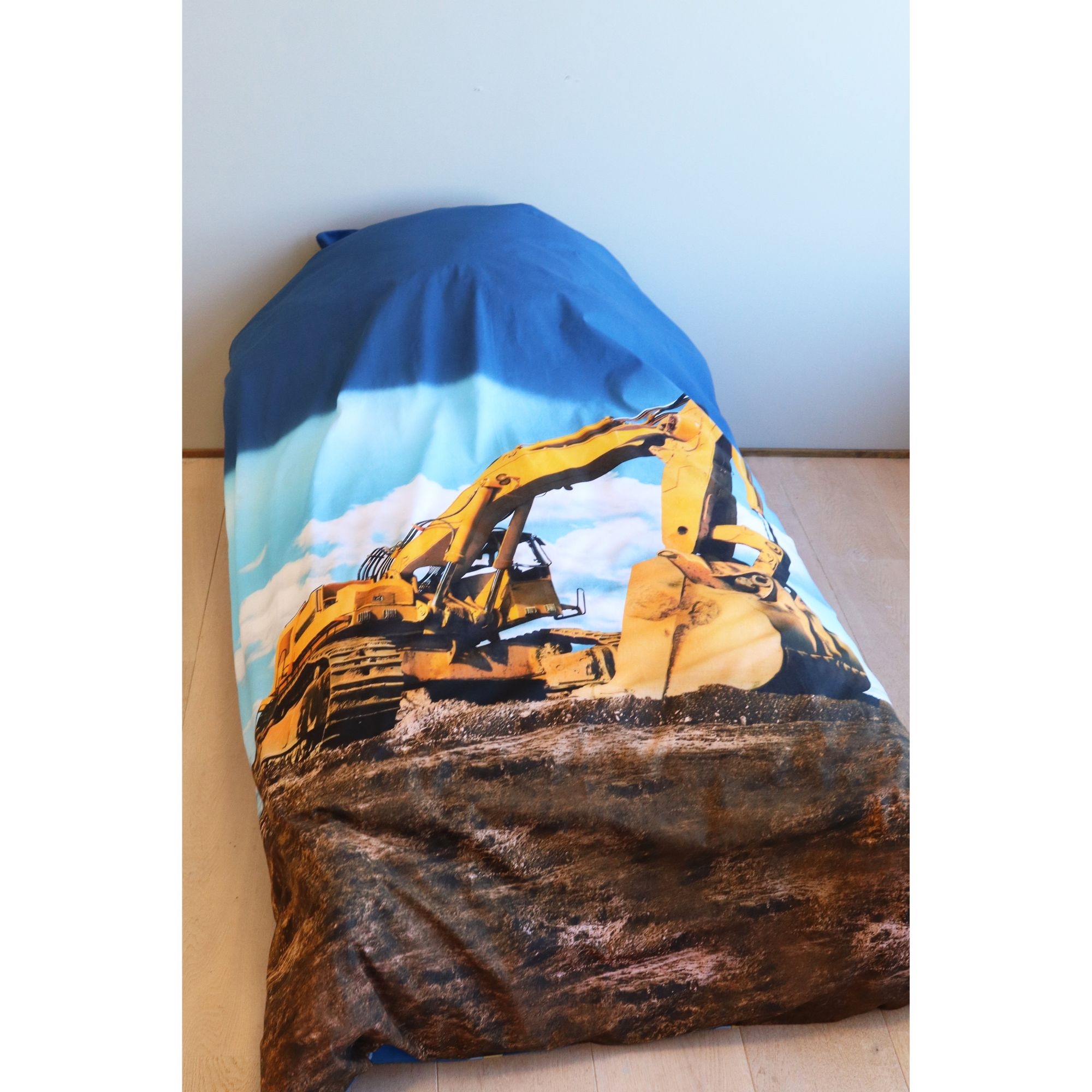 Gør sengetid ekstra spændende med dette seje gravemaskine sengetøj. Det flotte design viser en stor gravemaskine i arbejde på byggepladsen, som giver sengesættet et realistisk og actionfyldt udtryk. Den detaljerede gravemaskine gør sengesættet til et sikkert hit hos børn, der elsker store maskiner, entreprenørkøretøjer og byggepladser.