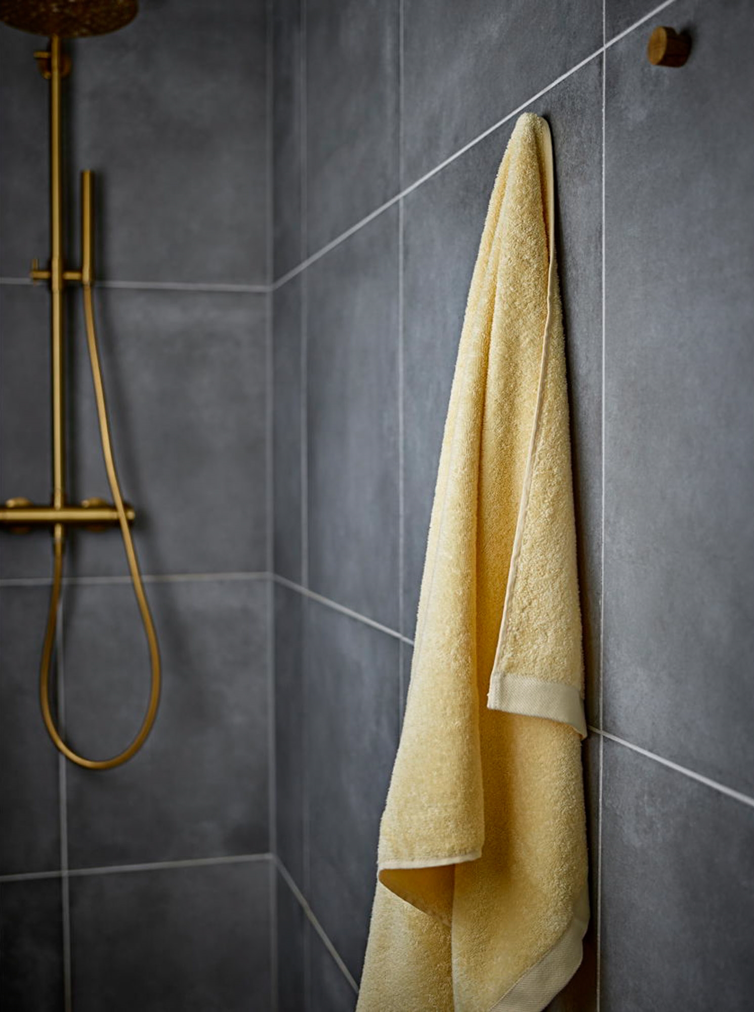 Håndklædet er kraftigt og blødt med en god sugeevne, som sikrer en behagelig følelse ved brug. Vævet bort i top og bund med diskret vævet logo og en strikket strop giver et eksklusivt udtryk.