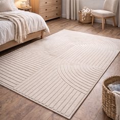 Dette flotte, moderne gulvtæppe kan nemt løfte hele rummets udtryk - og kan det bl.a. fordi det kombinerer komfort, slidstyrke og et stilfuldt grafisk design i én løsning. Det lyse tone-i-tone mønster med bløde, organiske buer pifter hjemmet op, og passer perfekt ind i både nordisk og minimalistisk indretning. Den cremefarvede nuance giver rummet et lyst og indbydende udtryk og fungerer flot sammen med alt fra lyse træsorter og beige toner til mere kontrastfyldte omgivelser.