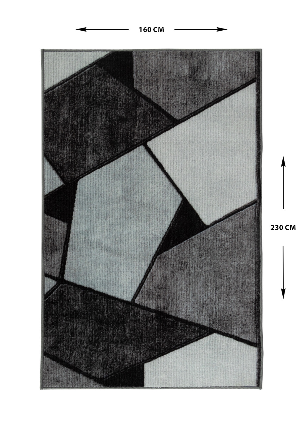Gulvtæppe 160x230 cm - Løs tæppe med skridsikker bagside - Grafisk design med sorte og grå nuancer - Blødt gulvtæppe fra Nordstrand Home Lea
