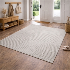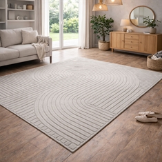 Dette flotte, moderne gulvtæppe kan nemt løfte hele rummets udtryk - og kan det bl.a. fordi det kombinerer komfort, slidstyrke og et stilfuldt grafisk design i én løsning. Det grå tone-i-tone mønster med bløde, organiske buer pifter hjemmet op, og passer perfekt ind i både nordisk og minimalistisk indretning. Den grå nuance giver rummet et lyst og indbydende udtryk og fungerer flot sammen med alt fra lyse træsorter og beige toner til mere kontrastfyldte omgivelser.