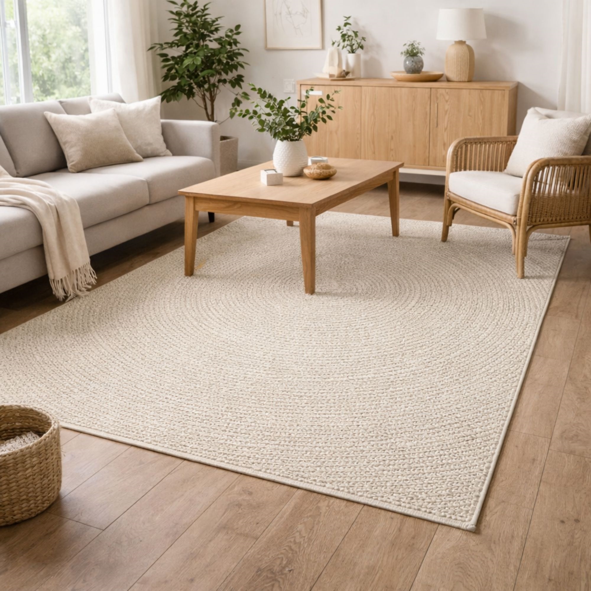 • Flot og minimalistisk cremefarvet gulvtæppe