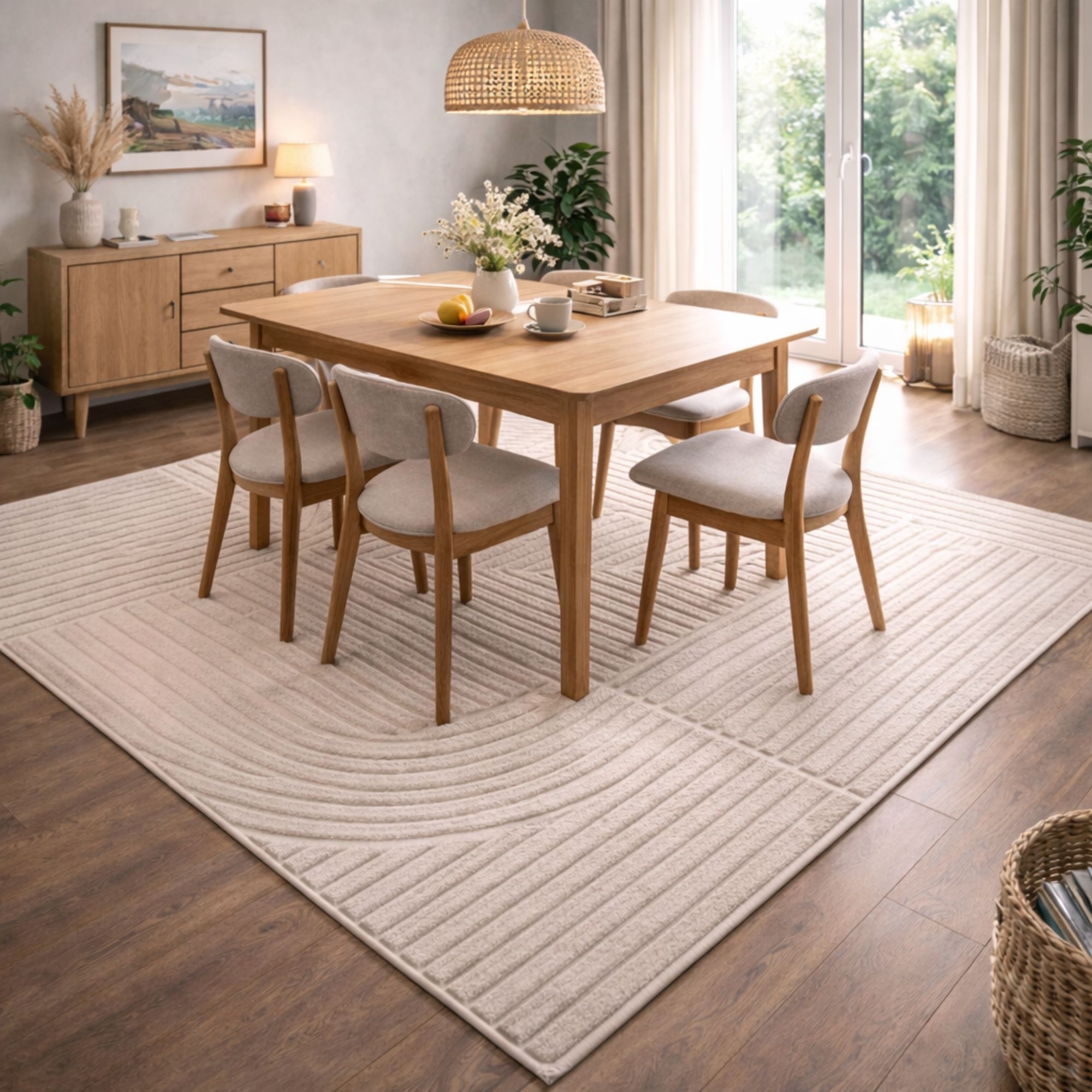 Forside » Indretning » Dekorationer » Gulvtæpper Gulvtæppe - 240x340 - Vævet - Cremefarvet med mønster - Elio - Nordstrand Home Nordstrand Home På lager Trustpilot Levering Antal Levering til kantsten (0,00) Gulvtæppe - 240x340 - Vævet - Cremefarvet med mønster - Elio - Nordstrand Home DKK Se mere fra: Nordstrand Home Artikelnummer: TA1024-16 Se vores store udvalg af kunstige planter og blomster Se vores udvalg af måtter Se vores store udvalg af alt til din boligindretning Har du spørgsmål til produktet? Flot gulvtæppe med tæt vævning og flot strukturPerfekt størrelse til stue eller ved sengenElegant tone-i-tone design med bløde former Type: Kort luv gulvtæppe Størrelse: 240x340 cm Tykkelse: 12 mm Farve: Creme ensfarvet Design: Elio Materiale: 50% PP (polypropylen) og 50% PES (polyester) Bagside: Jute Anvendelse: Indendørs Brand: Nordstrand Home Antal punkter/m2/tætvævet: 76.800 Anbefalet vedligeholdelse: Støvsugning & fugtig klud Certificering: STANDARD 100 by OEKO-TEX® (11.HTR.94219). Din garanti for at produktet er fri for sundhedsskadelig kemi. Savner du en enkel og nem måde at skabe noget helhed i dit hjem? Så kan dette ekstra store gulvtæppe kan være dét element, der binder indretningen sammen. Dette flotte, store moderne gulvtæppe kan nemt løfte hele rummets udtryk - og kan det bl.a. fordi det kombinerer komfort, slidstyrke og et stilfuldt grafisk design i én løsning. Det lyse tone-i-tone mønster med bløde, organiske buer pifter hjemmet op, og passer perfekt ind i både nordisk og minimalistisk indretning. Den cremefarvede nuance giver rummet et lyst og indbydende udtryk og fungerer flot sammen med alt fra lyse træsorter og beige toner til mere kontrastfyldte omgivelser. Et gulvtæppe som er velegnet til både stue, soveværelse eller kontor, hvor du ønsker en blød og rar overflade. Den kort- til mellemluvne kvalitet gør tæppet nemt at holde rent, da støv og snavs har svært ved at trænge ned i fibrene. Regelmæssig støvsugning er nok for at bevare det flotte udseende. Med dette flotte gulvtæppe får du altså noget, som både er stilrent og slidstærkt, og som kombinerer moderne design med komfort – ideelt til dig, der ønsker et dekorativt og praktisk tæppe til hjemmets mindre områder. Se vores store udvalg af forskellige boligtekstiler lige her Med Nordstrand Home er du sikret boligtekstiler i dansk design - i nordisk stil. Nordstrand Home lægger stor vægt på følelsen af velvære i et flot, men samtidig, afslappende miljø. Med Nordstrand Home behøver du ikke gå på kompromis, du finder altid produkter i klassiske og moderigtige farver. Nordstrand Home – Så føler du dig hjemme! Tilbage til Gulvtæpper