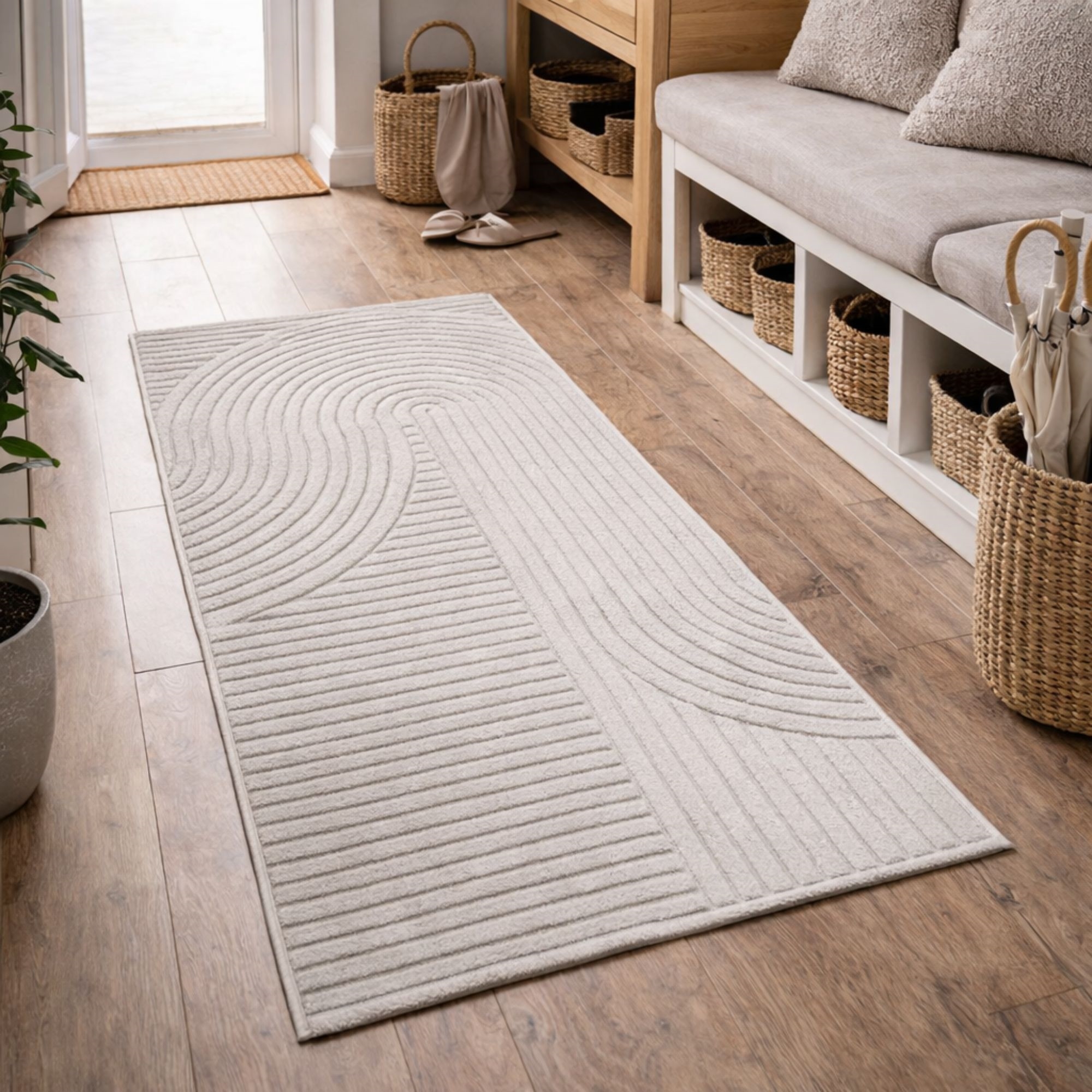 Dette flotte, moderne gulvtæppe kan nemt løfte hele rummets udtryk - og kan det bl.a. fordi det kombinerer komfort, slidstyrke og et stilfuldt grafisk design i én løsning. Det grå tone-i-tone mønster med bløde, organiske buer pifter hjemmet op, og passer perfekt ind i både nordisk og minimalistisk indretning. Den grå nuance giver rummet et lyst og indbydende udtryk og fungerer flot sammen med alt fra lyse træsorter og beige toner til mere kontrastfyldte omgivelser.