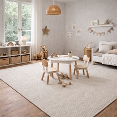 Fordi tæppet har en fladvævet struktur, kan det være et godt tæppe at have under spisebordet, hvor stole let kan trækkes frem og tilbage. Det ligger stabilt på gulvet og fungerer som base under sofabordet eller som samlende element i større rum. Det minimalistiske design gør det nemt at kombinere med både moderne og klassiske indretningsstil. Fordelen ved dette gulvtæppe er også, at det er formfast og modstandsdygtigt, hvilket gør, at det holder sig flot over tid. Dette gulvtæppe er en løsning, der både er praktisk i hverdagen og æstetisk i indretningen - og som skaber helhed i hjemmet.