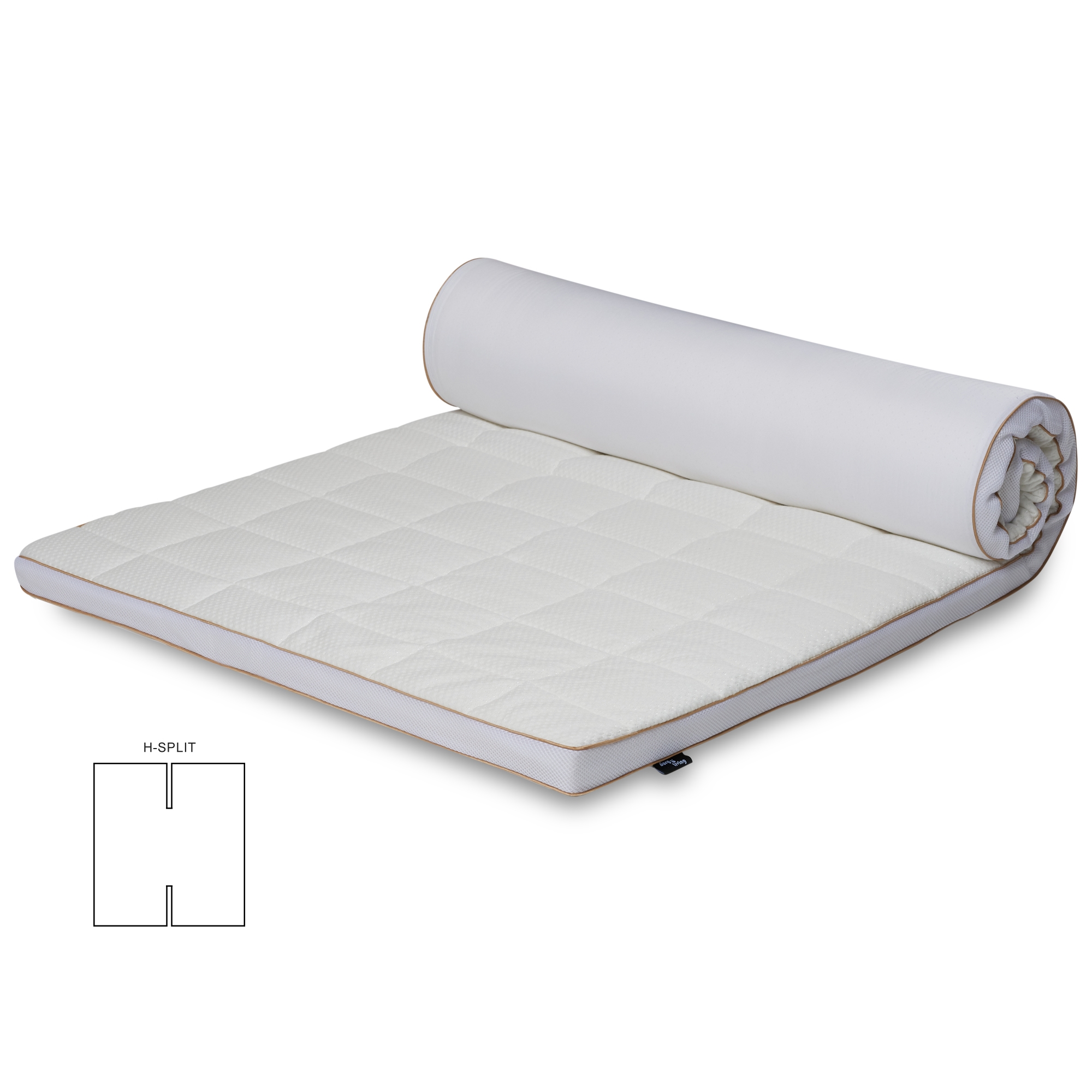 H-split topmadrasser er beregnet til elevationssenge. H-split betyder at madrassen har split i både top og bund, hvilke gør det muligt at anvende elevationsengens hæve/sænke funktioner, i begge ender, uafhængigt af hinanden. Ved at benytte en topmadras med H-split undgår man også "revnen" i midten af sengen, som man ellers ville få ved at benytte to enkelt topmadrasser.