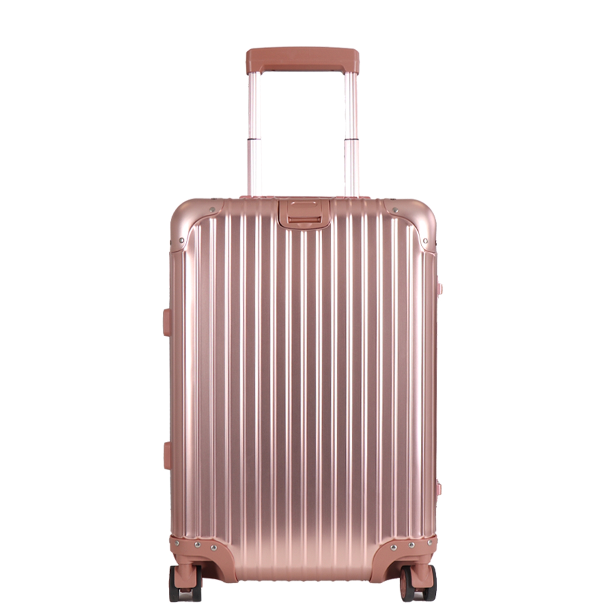 Lille kabinekuffert i en flot rosa-guld farve.