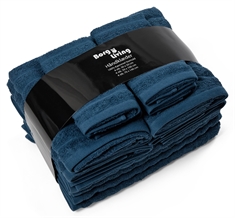 Håndklædepakke 12 stk. bløde håndklæder i 100% kæmmet bomuld - Blå håndklæder fra Borg Living