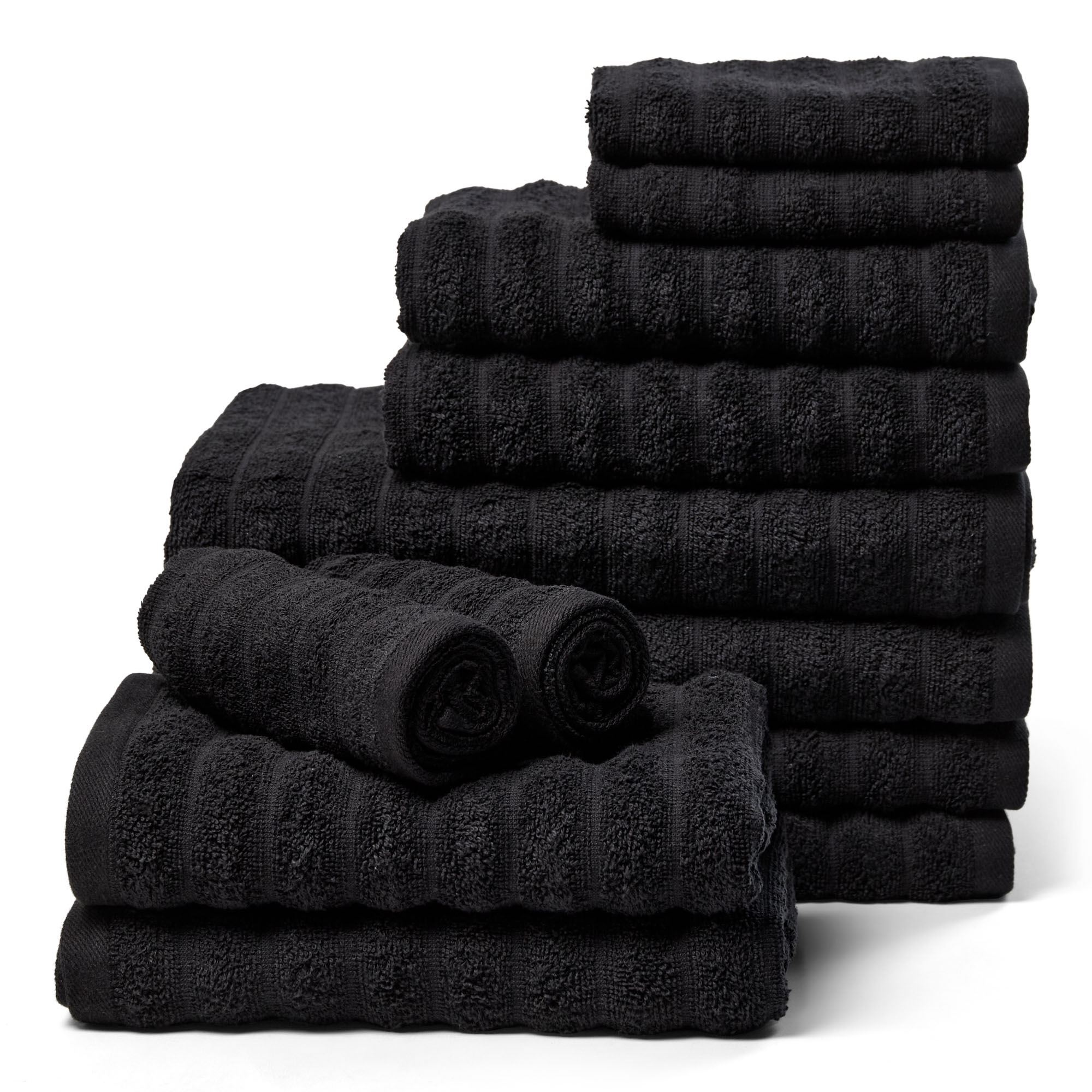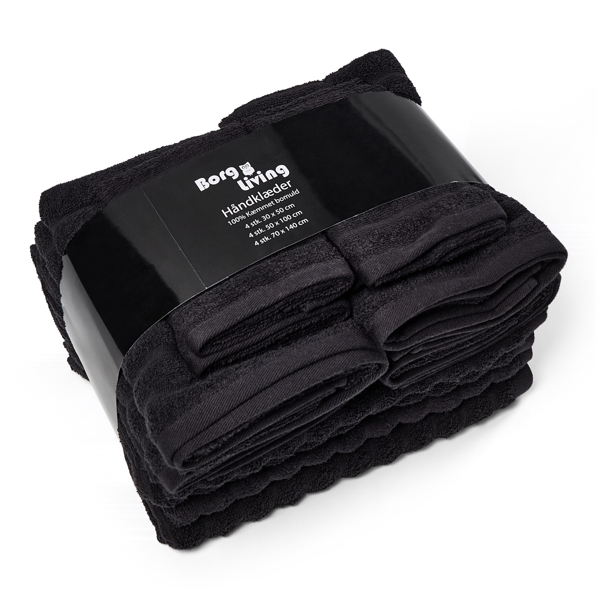 Håndklædepakke 12 stk. bløde håndklæder i 100% kæmmet bomuld - Sorte håndklæder fra Borg Living