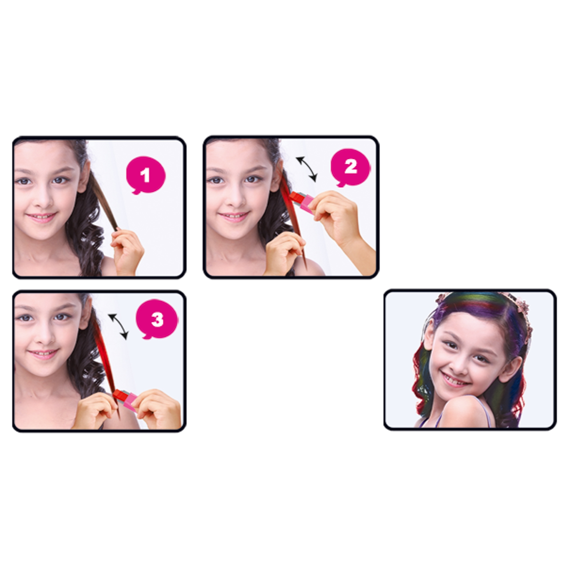 Hårdekorationssæt med hårkridtkamme. Sæt med maskine til at sætte pyntesten i håret, 150 pyntesten, hårkridtkamme og hårelastikker.