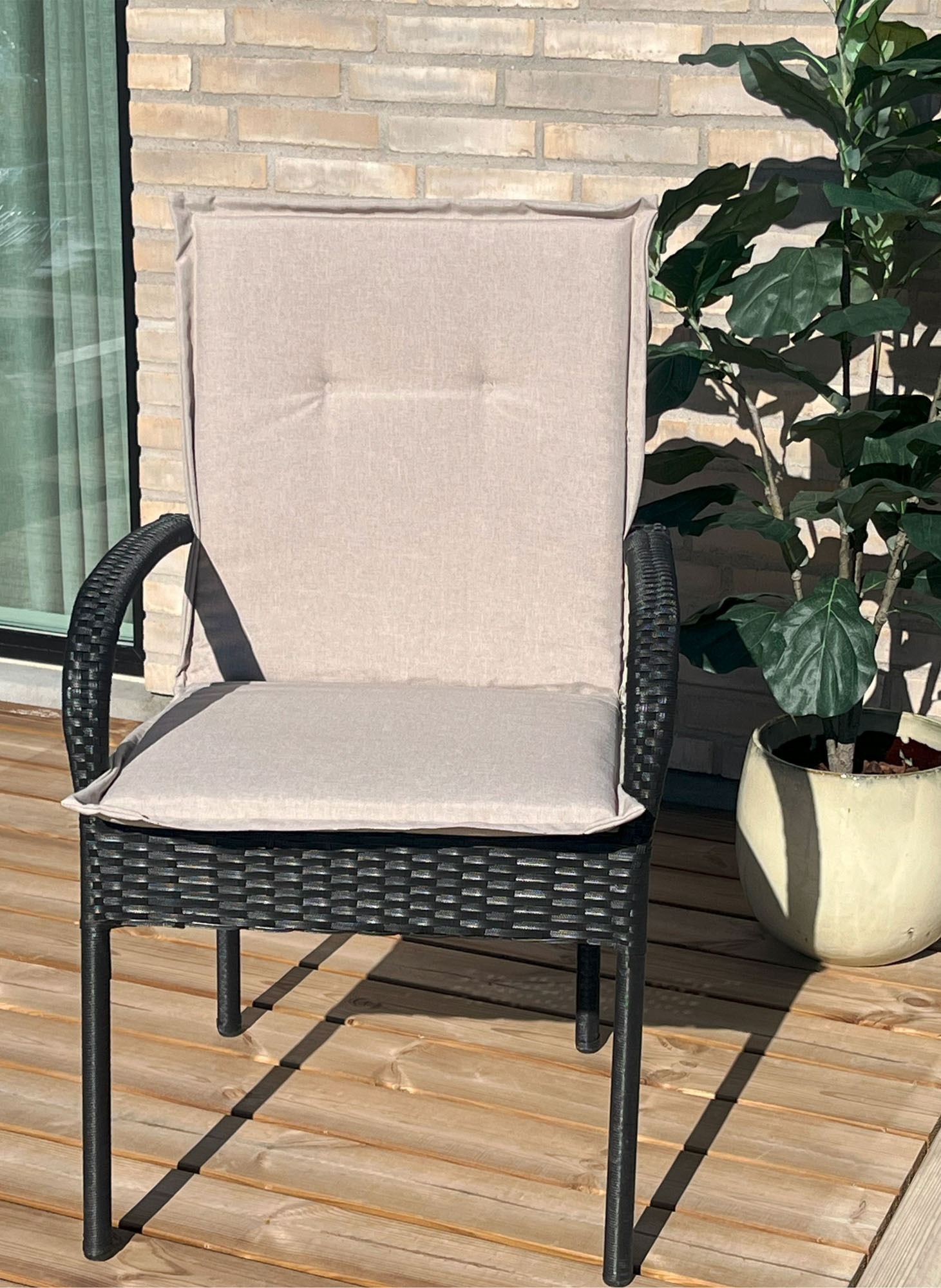 Forside » Summer Sale » Havehynder » Havehynder » Alle havehynder Havehynde til havestol - Beige universal stolehynde 5 cm skumfyld - God komfort skum & UV beskyttet betræk - Nordstrand Home hynde Spar37% Nordstrand Home 269,95169,95DKKSpar 100,- Få på lager Trustpilot Antal Læg i kurv Se mere fra: Nordstrand Home Artikelnummer: HA-HO-102 Har du spørgsmål til produktet? Slidstærkt betrækUV beskyttetVandafvisende Type: Havehynde til havestol Ryghøjde: 54 cm Sæde dybde: 50 cm (bredde: 53 cm) Tykkelse: 5 cm Farve: Beige Fyld: Skum Betræk: UV-resistent polyester Vandafvisende: Ja Vask: Rengøres med fugtig klud Brand: Nordstrand Home Model: Universal Certificering: STANDARD 100 by OEKO-TEX® (SH025 165885 TESTEX). Din garanti for at produktet er fri for sundhedsskadelig kemi. Stolehynde til havestol med skumfyld og slidstærkt betræk. De flotte udendørs hynder er alsidige fordi de passer til de fleste havestole med lav ryg eller caféstole. De er desuden lette at pakke væk, når sommeren er endt, da de ikke fylder meget. Hyndernes kombination af stilrent button design, moderne farver og bløde polstring - gør dine havemøbler endnu mere indbydende til at nyde sommeren ude. Universal stolehynde til almindelige havestole med ryglæn. En blød hynde med 5 cm skumfyld, som både kan bruges i haven, på terrassen og altanen. En enkel og pæn hynde til enhver udendørs indretning, produceret i slidstærke materialer til at give din havestol og havemøbler det sidste finish af hygge og komfort. Havehynden er beklædt med et standard strukturvævet polyesterbetræk, der er særlig slidstærkt og UV-resistent. Dette betyder, at hynden bedre kan modstå skiftende vejrforhold - og især solens stråler, uden at falme i farve eller miste form. Hynden er også overfladebehandlet, så den er vand- og smudsafvisende, samt har hurtigtørrende fyld og betræk. Stolehynden er derfor nem at vedligeholde, da den let kan rengøres med en fugtig klud. Hynden fastgøres med justerbar spænderem bagom stoleryggen, samt snore i hver side. Nordstrand Home universal havehynde er en alsidig løsning til enhver havestol. Med et 5 cm skumfyld giver denne havehynde en behagelig siddeoplevelse. Med Nordstrand Home er du sikret boligtekstiler i dansk design - i nordisk stil. Nordstrand Home lægger stor vægt på følelsen af velvære i et flot, men samtidig, afslappende miljø. Med Nordstrand Home behøver du ikke gå på kompromis, du finder altid produkter i klassiske og moderigtige farver. Nordstrand Home – Så føler du dig hjemme! Tilbage til Alle havehynder