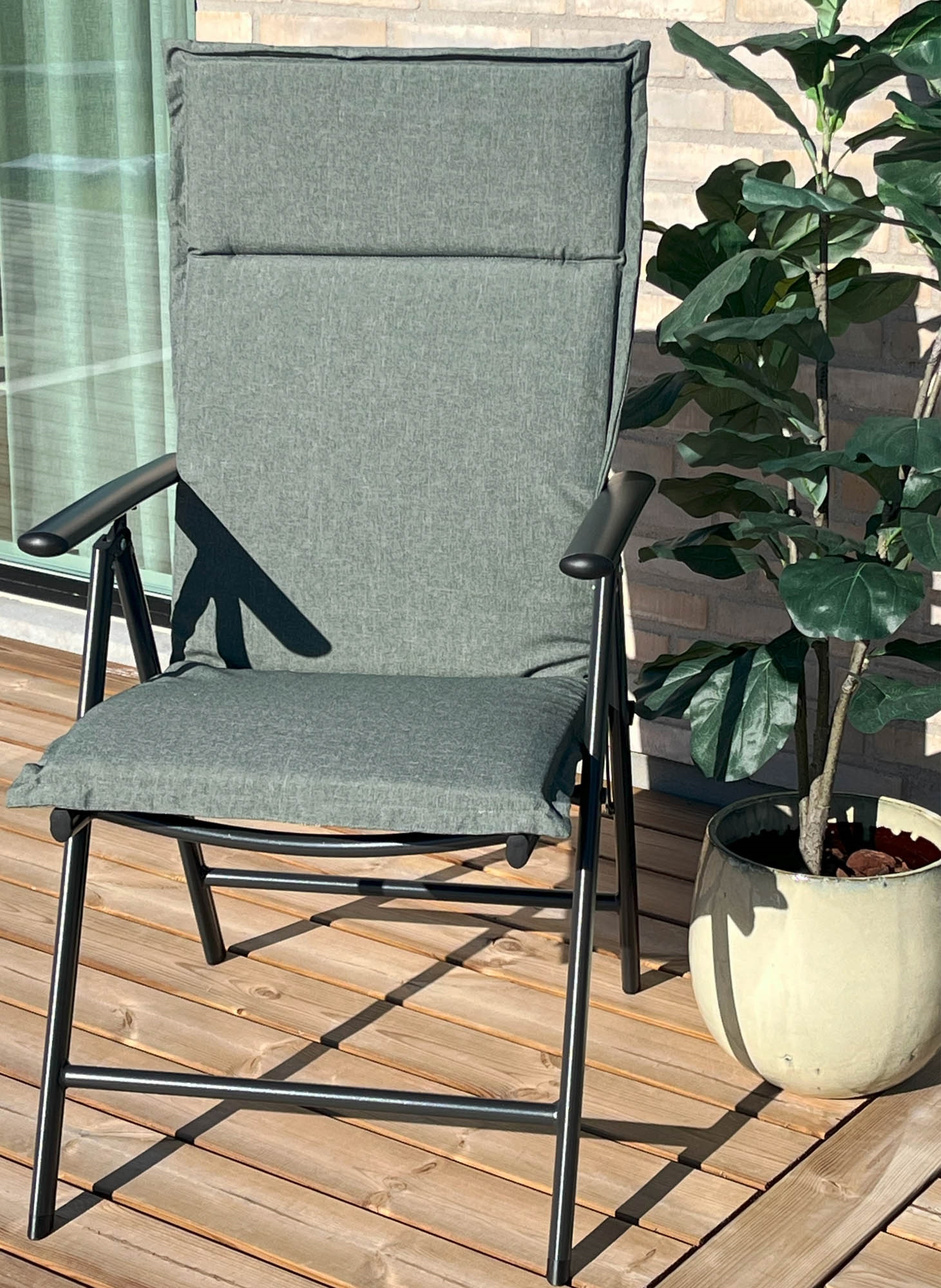 Forside » Indretning » Haven Havehynde til positionsstol - Luksus hynde 5 cm skum - Grøn havehynde med høj ryg - Slidstærkt UV-resistent betræk - Nordstrand Home stolehynde Spar74% Nordstrand Home 549,95145,00DKKSpar 405,- På lager Trustpilot Antal Læg i kurv Se mere fra: Nordstrand Home Artikelnummer: HA-POS-203 Har du spørgsmål til produktet? Blød komfort hyndeSlidstærkt betrækVandafvisende og UV beskyttet Type: Luksus havehynde til positionsstol (havestol med høj ryg) Ryghøjde: 70 cm Sæde dybde: 47 cm (bredde: 52 cm) Tykkelse: 5 cm Farve: Grøn Fyld: PU-Skum Betræk: UV-resistent polyester Vandafvisende: Ja Vask: Rengøres med fugtig klud Brand: Nordstrand Home Model: Luksus Certificering: STANDARD 100 by OEKO-TEX® (SH025 165885 TESTEX). Din garanti for at produktet er fri for sundhedsskadelig kemi. En blød luksus havehynde til positionsstol, produceret med 5 cm skumkerne og slidstærkt betræk, som også er UV beskyttet. Brug stolehynden til dine havestole med høj ryg på terrassen eller på altanen. Den flotte havehynde passer godt til havestole med høj ryg eller i den lækre loungestol med høj ryg, som lige mangler det sidste finish af komfort. Luksus stolehynde til almindelige positionsstole. Den alsidige havehynde til havestole er særligt velegnet til havestole med høj ryg, men kan også anvendes i en høj loungestol eller i campingstole. Denne type hynde er særligt populære til campingstole. Den bløde skumfyldte havestole hynde gør nemlig din siddeplads langt mere komfortabel, og lettere at hvile på. Luksus hynden fylder desuden heller ikke meget, og derfor den perfekte balance af komfort og fleksibel, lige til let at pakke sammen, når sommeren eller turen er forbi. Havehynden er beklædt med et standard strukturvævet polyesterbetræk, der er særlig slidstærkt og UV-resistent. Dette betyder, at hynden bedre kan modstå skiftende vejrforhold - og især solens stråler, uden at falme i farve eller miste form. Hynden er også overfladebehandlet, så den er vand- og smudsafvisende, samt har hurtigtørrende fyld og betræk. Stolehynden er derfor nem at vedligeholde, da den let kan rengøres med en fugtig klud. Hynden fastgøres med justerbar spænderem bagom stoleryggen, samt snore i hver side. Med Nordstrand Home er du sikret boligtekstiler i dansk design - i nordisk stil. Nordstrand Home lægger stor vægt på følelsen af velvære i et flot, men samtidig, afslappende miljø. Med Nordstrand Home behøver du ikke gå på kompromis, du finder altid produkter i klassiske og moderigtige farver. Nordstrand Home – Så føler du dig hjemme! Tilbage til Haven