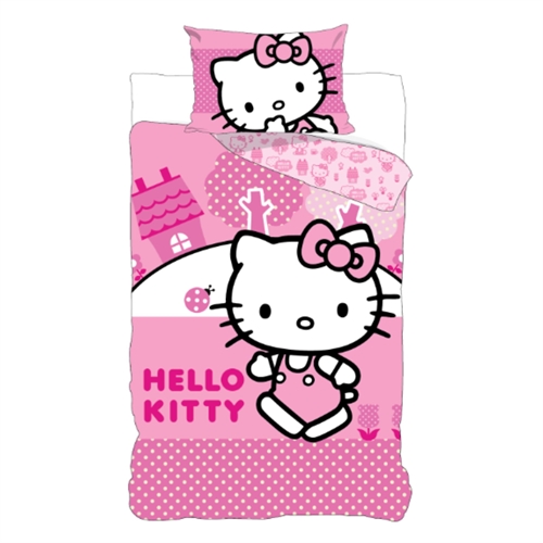 Forside » Sengetøj » Børne sengetøj » Junior sengetøj 100x140 cm Hello Kitty sengetøj 100x140 cm - Lyserødt junior sengesæt med Hello Kitty - Vendbart motiv - 100% bomulds sengelinned Licens Skarp pris: 148,00DKK På lager Trustpilot Antal Læg i kurv Se mere fra: Licens Artikelnummer: 1647-8 Læs vores sengetøjsguide Se vores store udvalg af lagner Se vores store udvalg af dyner 100x140 Har du spørgsmål til produktet? Høj åndbarhed100% blød bomuldOEKO-TEX® certificeret Dynebetræk: 100x140 cm - Junior sengesæt Pudebetræk: 40x45 cm Materiale: 100% blød bomuld Farve: Lyserød Motiv: Hello Kitty Design: Vendbar - Forside med Hello Kitty, bagside med små motiver Lukning: Dyne med knapper, pudebetræk med overlap Vask: 60° Tørretumbling: Ja Tåler strygning: Ja Certificering: STANDARD 100 by OEKO-TEX® (17.HPK.23879). Din garanti for at produktet er fri for sundhedsskadelig kemi. Blødt junior sengetøj i 100% bomuld, med et sødt design af Hello Kitty. Produceret med lette og åndbare bomuldstråde som giver sengesættet en følelse af blødhed, der gør at dynen føles dejlig for dit barn at sove med. Balancen i naturlig egenskaber og komfort fra det bløde materiale, kombineret med det hyggelige design, gør dette sæt til en sikker favorit hos dit barn. Hello Kitty junior sengetøj med den sødeste lille katte-pige Hello Kitty, som vi alle kender fra tegnefilmen af samme navn. Sengetøjet er i et vendbart design. På forsiden ses Hello Kitty med huse og træer i baggrunden og på bagsiden er der et all-over print af små motiver. Det bløde bomuldsstof føles behageligt mod huden og sikrer en god og rolig nattesøvn. Materialet er åndbart og slidstærkt, hvilket gør det ideelt til daglig brug. Sengesættet er OEKO-TEX® certificeret, hvilket garanterer, at det er testet for skadelige stoffer og trygt for børn at sove med. Sengetøjet er velegnet til daglig brug, da det er nemt at vaske og tåler 60°. Uden behov for strygning bevarer det sin blødhed og farve, selv efter flere vaske. For barnet bør sengen være et trygt sted og alle elementerne skal til sammen skabe bløde og dejlige omgivelser for barnet at finde ro i. Brug derfor gerne barnets interesser, til at skabe et trygt soverum for barnet. Hos os kan du finde et stort udvalg af tilbehør til sengen og børneværelset, lige fra lagner til dyner, puder, sengetøj og meget mere, og massere af produkter med alle børnenes favoritter på. Alt sammen elementer som kan være med til at skabe det rette sove miljø og værelse til dit barn. Her kan du finde lækre og bløde kvalitets lagner til børn Tilbage til Junior sengetøj 100x140 cm