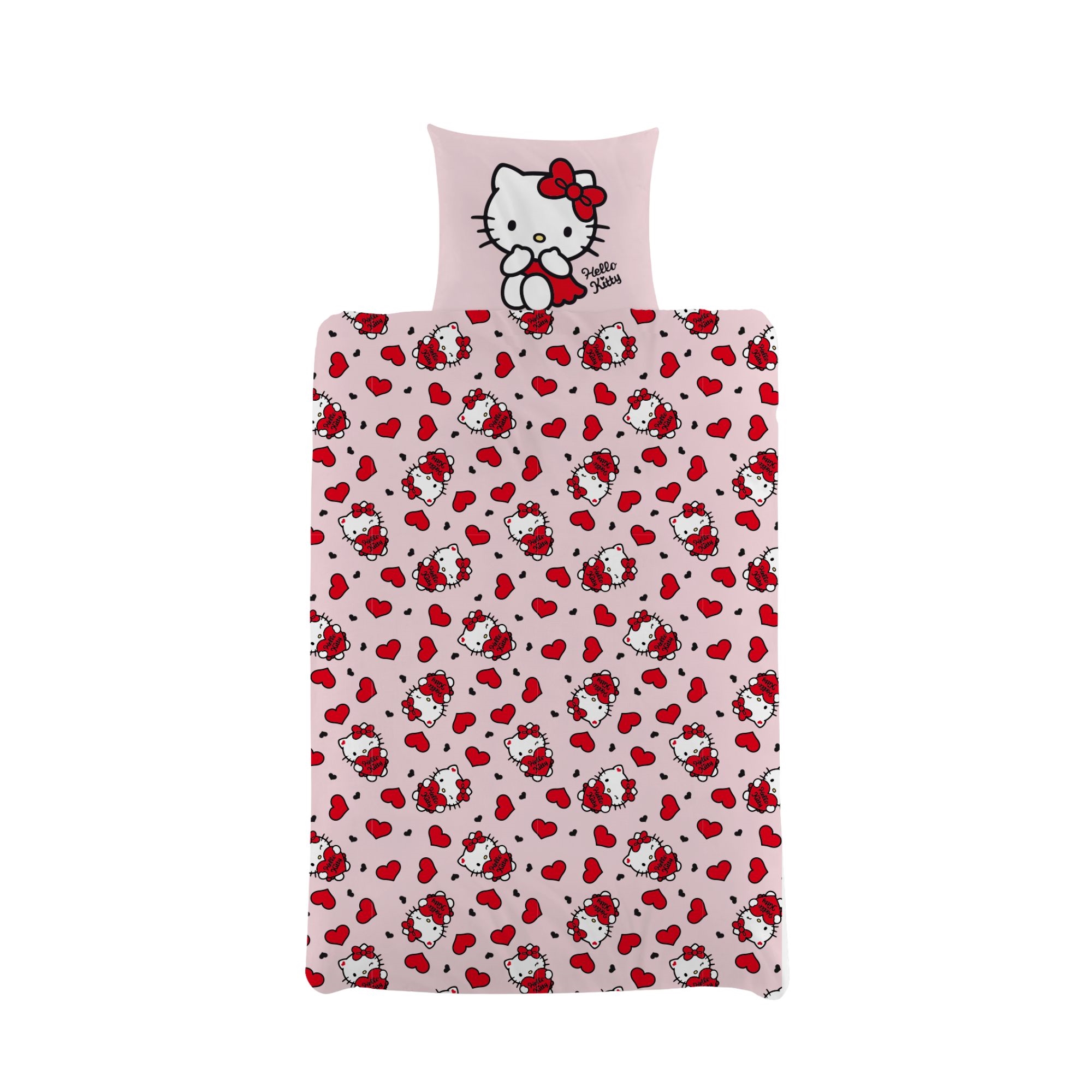 Hello Kitty sengetøj – Bomuldssengesæt med Hello Kitty og hjerter