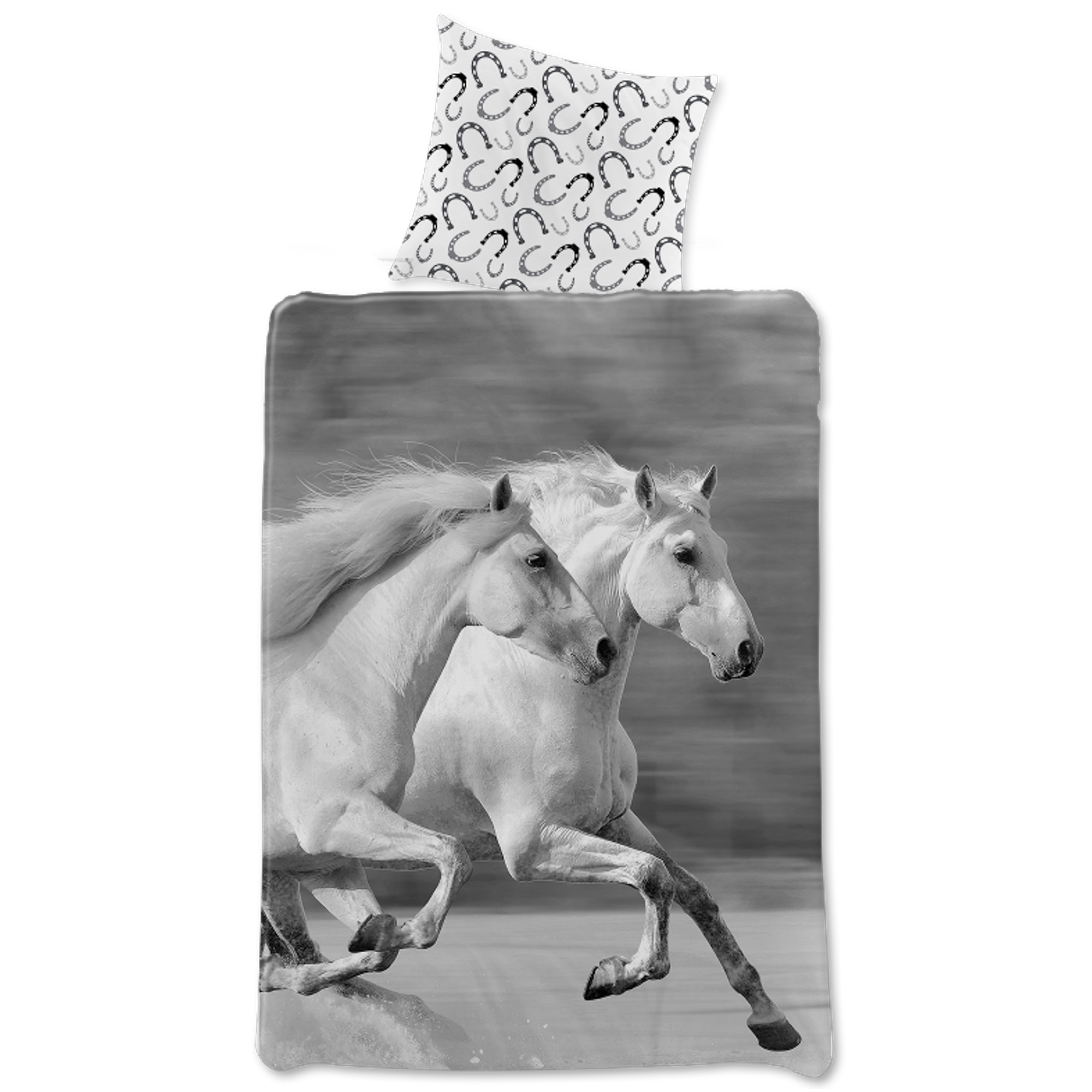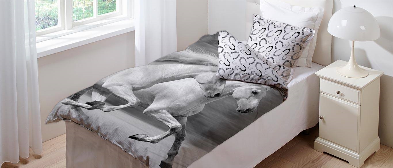 Forside » Sengetøj » Børne sengetøj » Børne sengetøj 140x200 cm Heste sengetøj 140x200 cm - Galoperende heste - Vendbar dynebetræk - 100% bomulds sengesæt Licens 149,95DKK På lager Trustpilot Antal Læg i kurv Se mere fra: Licens Artikelnummer: 21163-1 Læs vores sengetøjsguide Se vores store udvalg af lagner Se vores store udvalg af dyner 140x200 Har du spørgsmål til produktet? Høj åndbarhedBlødt og lækkert bomuldOEKO-TEX® certificeret Dynebetræk: 140x200 cm Pudebetræk: 60x63 cm Materiale: 100% blød bomuld Farve: Grå og hvid Motiv: Heste Design: Vendbar - Forside med galoperende heste, bagside med all-over print af hestesko Lukning: Dyne med knapper, pudebetræk med overlap Vask: 60° Tørretumbling: Ja Tåler strygning: Ja Certificering: STANDARD 100 by OEKO-TEX® (1976-303). Din garanti for at produktet er fri for sundhedsskadelig kemi. Sengesæt i 100% blød bomuld, med flotte heste. Med lette og åndbare bomuldstråde giver dette, sengesæt en blød overflade, som gør dynen behagelig for barnet at sove med. Et slidestærkt sengesæt med høj åndbarhed og absorberingsevne, som vil hjælpe med at gøre sovetid til en rar oplevelse. Heste sengesæt. Et flot sæt sengetøj, der er vendbart med forskellige motiver for og bag. På forsiden ses to elegante, løbende heste. Vender du sengesættet om, ses en side med aftryk af hestesko. Enhver hesteglad glad pige eller dreng, vil elske dette sæt sengetøj. Sengesættet er produceret i 100% blød bomuld som gør sættet slidestærkt og med høj åndbarhed. Den rene bomuldskvalitet giver et lækkert og blødt sengesæt, der er med til at fremme en sovekomfort for barnet. Bomuldssengetøj kan vaskes ved 60° i vaskemaskinen, som er også et med til at holde et et højt hygiejne niveau. Sengetøjet er yderligere fremstillet med OEKO-TEX certificeret, hvilke er din garanti for at sættet er fri for skadelig kemi. Gå på udkig efter favoritterne og meget mere, i vores store udvalg af tilbehør til børneuniverset For barnet bør sengen være et trygt sted og alle elementerne skal til sammen skabe bløde og dejlige omgivelser for barnet at finde ro i. Brug derfor gerne barnets interesser, til at skabe et trygt soverum for barnet. Hos os kan du finde et stort udvalg af tilbehør til sengen og børneværelset, lige fra lagner til dyner, puder, sengetøj og meget mere, og massere af produkter med alle børnenes favoritter på. Alt sammen elementer som kan være med til at skabe det rette sove miljø og værelse til dit barn. Her kan du finde lækre og bløde kvalitets lagner Tilbage til Børne sengetøj 140x200 cm