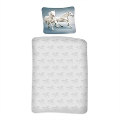 Forside » Sengetøj » Børne sengetøj » Børne sengetøj 140x200 cm Heste sengetøj - 140x200 cm - Hvide galoperende heste - Vendbart design - Sengesæt i 100% bomuld Licens 249,95DKK På lager Trustpilot Antal Læg i kurv Se mere fra: Licens Artikelnummer: 8144-1 Læs vores sengetøjsguide Se vores store udvalg af lagner Se vores store udvalg af dyner 140x200 Har du spørgsmål til produktet? Blødt - 100% bomuldGod åndbarhed og let vedligeholdelseSlidstærkt Dynebetræk: 140x200 cm Pudebetræk: 60x63 cm Materiale: 100% blød bomuld Farve: Hvide og blå farver Motiv: Vendbart design - forside med heste motiv, bagside med skygge print af heste Lukning: Dyne med knapper og pudebetræk med overlap Vask: 60° Tørretumbling: Ja Tåler strygning: Ja Certificering: STANDARD 100 by OEKO-TEX® (2012PK0016). Din garanti for at produktet er fri for sundhedsskadelig kemi. Sengetøj med et sejt motiv af vilde hvide heste, i fuld galop. Det bløde sengesæt produceret i 100% bomuld er både åndbart og absorberende, og med god sovekomfort. Et slidstærkt bomulds børnesengesæt, som gør børneværelset lidt mere spændende. Et rigtig flot sæt sengetøj med hesteprint. Billedet viser to galoperende, smukke og hvide heste. Baggrunden er i blålige nuancer. Vendes sengesættet om er der små aftegninger af galoperende heste på en hvid baggrund. Et virkelig smukt sengesæt som alle hesteglade piger og drenge vil elske at putte med. Sengesættet er produceret i 100% blød bomuld som gør sættet slidestærkt og med høj åndbarhed. Den rene bomuldskvalitet giver et lækkert og blødt sengesæt, der er med til at fremme en sovekomfort for barnet. Bomuldssengetøj kan vaskes ved 60° i vaskemaskinen, som er også et med til at holde et et højt hygiejne niveau. Sengetøjet er yderligere fremstillet med OEKO-TEX certificeret, hvilke er din garanti for at sættet er fri for skadelig kemi. Gå på udkig efter favoritterne og meget mere, i vores store udvalg af tilbehør til børneuniverset For barnet bør sengen være et trygt sted og alle elementerne skal til sammen skabe bløde og dejlige omgivelser for barnet at finde ro i. Brug derfor gerne barnets interesser, til at skabe et trygt soverum for barnet. Hos os kan du finde et stort udvalg af tilbehør til sengen og børneværelset, lige fra lagner til dyner, puder, sengetøj og meget mere, og massere af produkter med alle børnenes favoritter på. Alt sammen elementer som kan være med til at skabe det rette sove miljø og værelse til dit barn. Her kan du finde lækre og bløde kvalitets lagner Tilbage til Børne sengetøj 140x200 cm
