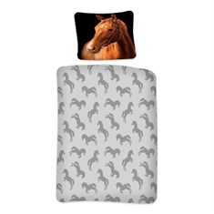 Forside » Sengetøj » Børne sengetøj » Børne sengetøj 140x200 cm Heste sengetøj 140x200 cm - Stort og flot heste motiv - Vendbar dynebetræk - 100% bomulds sengesæt Licens 169,95DKK På lager Trustpilot Antal Læg i kurv Se mere fra: Licens Artikelnummer: 1521-1 Læs vores sengetøjsguide Se vores store udvalg af lagner Se vores store udvalg af dyner 140x200 Har du spørgsmål til produktet? Høj åndbarhedBlødt og lækkert bomuldOEKO-TEX® certificeret Dynebetræk: 140x200 cm Pudebetræk: 60x63 cm Materiale: 100% blød bomuld Farve: Stort, brun og grå Vævning: 220TC (Thread count = antal tråde pr. kvadrattomme) Motiv: Hest Design: Vendbar - Forside med en hest, bagside med all-over print af heste Lukning: Dyne med knapper, pudebetræk med overlap Vask: 60° Tørretumbling: Ja Tåler strygning: Ja Certificering: STANDARD 100 by OEKO-TEX® (2012K0016). Din garanti for at produktet er fri for sundhedsskadelig kemi. Sengesæt i 100% blød bomuld, med en hest på en sort baggrund. Produceret med lette og åndbare bomuldstråde som giver sengesættet en følelse af blødhed, der gør at dynen føles dejlig for dit barn at sove med. Et slidestærkt sengesæt med høj åndbarhed og absorberingsevne, som vil hjælpe med at gøre sovetid til en rar oplevelse. Et rigtig flot sæt sengetøj med heste motiv. Sengesættet er vendbart, med et sødt design af en flot hest i silhuet på forsiden og et all-over print af springende heste på en grå baggrund på bagsiden. Alle hesteglade piger og drenge vil simpelthen elske at gå til ro og putte sig ned under dette sengesæt. Det er altid en god ide at gøre brug af barnets interesser, hvis man ønsker at skabe et tryggere og mere spændende sovemiljø til sit barn. Sengesættet er produceret i 100% blød bomuld som gør sættet slidestærkt og med høj åndbarhed. Den rene bomuldskvalitet giver et lækkert og blødt sengesæt, der er med til at fremme en sovekomfort for barnet. Bomuldssengetøj kan vaskes ved 60° i vaskemaskinen, som er også et med til at holde et et højt hygiejne niveau. Sengetøjet er yderligere fremstillet med OEKO-TEX certificeret, hvilke er din garanti for at sættet er fri for skadelig kemi. Gå på udkig efter favoritterne og meget mere, i vores store udvalg af tilbehør til børneuniverset For barnet bør sengen være et trygt sted og alle elementerne skal til sammen skabe bløde og dejlige omgivelser for barnet at finde ro i. Brug derfor gerne barnets interesser, til at skabe et trygt soverum for barnet. Hos os kan du finde et stort udvalg af tilbehør til sengen og børneværelset, lige fra lagner til dyner, puder, sengetøj og meget mere, og massere af produkter med alle børnenes favoritter på. Alt sammen elementer som kan være med til at skabe det rette sove miljø og værelse til dit barn. Her kan du finde lækre og bløde kvalitets lagner Tilbage til Børne sengetøj 140x200 cm