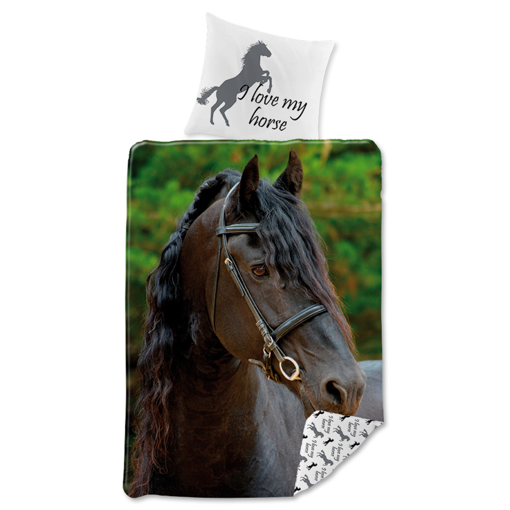 Forside » Sengetøj » Børne sengetøj » Børne sengetøj 140x200 cm Heste sengetøj 140x200 cm - I love my horse - Vendbar dynebetræk - 100% bomulds sengesæt Licens 199,95DKK På lager Trustpilot Antal Læg i kurv Se mere fra: Licens Artikelnummer: 1580-1 Læs vores sengetøjsguide Se vores store udvalg af lagner Se vores store udvalg af dyner 140x200 Har du spørgsmål til produktet? Populært design Blødt og lækkert bomuldOEKO-TEX® certificeret Dynebetræk: 140x200 cm Pudebetræk: 60x63 cm Materiale: 100% blød bomuld Farve: Brun og grå Motiv: Hest Design: Vendbar - Forside med hestemotiv, bagside med all-over print af heste Lukning: Dyne med knapper, pudebetræk med overlap Vask: 60° Tørretumbling: Ja Tåler strygning: Ja Certificering: STANDARD 100 by OEKO-TEX®. Din garanti for at produktet er fri for sundhedsskadelig kemi. Blødt sengetøj med motiv af en flot hest. Det fine sengetøj har to sider at vælge imellem, da det er lavet med smart vendbart design. Det bløde sengesæt produceret i 100% bomuld er både åndbart og absorberende, og med god sovekomfort. Et slidstærkt bomulds børnesengesæt, som gør børneværelset lidt mere spændende. Et flot heste sengetøj, der er vendbart med forskellige motiver for og bag. På den ene side er der motiver af en flot sort/brun hest. Vender du sengesættet om, ses en side med aftryk af små heste. Enhver hesteglad glad pige eller dreng, vil elske dette sæt sengetøj. Det er altid en god ide at gøre brug af barnets interesser, hvis man ønsker at skabe et tryggere og mere spændende sovemiljø til sit barn. Sengesættet er produceret i 100% blød bomuld som gør sættet slidestærkt og med høj åndbarhed. Den rene bomuldskvalitet giver et lækkert og blødt sengesæt, der er med til at fremme en sovekomfort for barnet. Bomuldssengetøj kan vaskes ved 60° i vaskemaskinen, som er også et med til at holde et et højt hygiejne niveau. Sengetøjet er yderligere fremstillet med OEKO-TEX certificeret, hvilke er din garanti for at sættet er fri for skadelig kemi. Gå på udkig efter favoritterne og meget mere, i vores store udvalg af tilbehør til børneuniverset For barnet bør sengen være et trygt sted og alle elementerne skal til sammen skabe bløde og dejlige omgivelser for barnet at finde ro i. Brug derfor gerne barnets interesser, til at skabe et trygt soverum for barnet. Hos os kan du finde et stort udvalg af tilbehør til sengen og børneværelset, lige fra lagner til dyner, puder, sengetøj og meget mere, og massere af produkter med alle børnenes favoritter på. Alt sammen elementer som kan være med til at skabe det rette sove miljø og værelse til dit barn. Her kan du finde lækre og bløde kvalitets lagner Tilbage til Børne sengetøj 140x200 cm