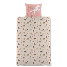 Forside » Sengetøj » Børne sengetøj » Børne sengetøj 140x200 cm Heste sengetøj 140x200 cm - Flot romantisk hest - 100% bomulds sengesæt Licens 149,95DKK På lager Trustpilot Antal Læg i kurv Se mere fra: Licens Artikelnummer: 1834-1 Læs vores sengetøjsguide Se vores store udvalg af lagner Se vores store udvalg af dyner 140x200 Har du spørgsmål til produktet? Populært design Blødt og lækkert bomuldOEKO-TEX® certificeret Dynebetræk: 140x200 cm Pudebetræk: 60x63 cm Materiale: 100% blød bomuld Farve: Lyserød Motiv: Hest med blomster og hjerter Design: Vendbar - Forside med en hest, bagside med all-over print af hestemotiver Lukning: Dyne med knapper, pudebetræk med overlap Vask: 60° Tørretumbling: Ja Tåler strygning: Ja Certificering: STANDARD 100 by OEKO-TEX® (11-67789 Shirley). Din garanti for at produktet er fri for sundhedsskadelig kemi. Blødt sengetøj med motiv af en hest med blomster og hjerter. Det fine sengetøj har to sider at vælge imellem, da det er lavet med smart vendbart design. Det bløde sengesæt produceret i 100% bomuld er både åndbart og absorberende, og med god sovekomfort. Et slidstærkt bomulds børnesengesæt, som gør børneværelset lidt mere spændende. Et flot og lækkert heste sengetøjssæt, der er vendbart med forskellige motiver for og bag. På den ene side er der motiver af en elegant hest med hjerter og blomster. Vender du sengesættet om, er der et flot mønster med heste. Enhver hesteglad pige eller dreng, vil elske dette sæt sengetøj. Sengesættet er produceret i 100% blød bomuld som gør sættet slidestærkt og med høj åndbarhed. Den rene bomuldskvalitet giver et lækkert og blødt sengesæt, der er med til at fremme en sovekomfort for barnet. Bomuldssengetøj kan vaskes ved 60° i vaskemaskinen, som er også et med til at holde et et højt hygiejne niveau. Sengetøjet er yderligere fremstillet med OEKO-TEX certificeret, hvilke er din garanti for at sættet er fri for skadelig kemi. Gå på udkig efter favoritterne og meget mere, i vores store udvalg af tilbehør til børneuniverset For barnet bør sengen være et trygt sted og alle elementerne skal til sammen skabe bløde og dejlige omgivelser for barnet at finde ro i. Brug derfor gerne barnets interesser, til at skabe et trygt soverum for barnet. Hos os kan du finde et stort udvalg af tilbehør til sengen og børneværelset, lige fra lagner til dyner, puder, sengetøj og meget mere, og massere af produkter med alle børnenes favoritter på. Alt sammen elementer som kan være med til at skabe det rette sove miljø og værelse til dit barn. Her kan du finde lækre og bløde kvalitets lagner Tilbage til Børne sengetøj 140x200 cm