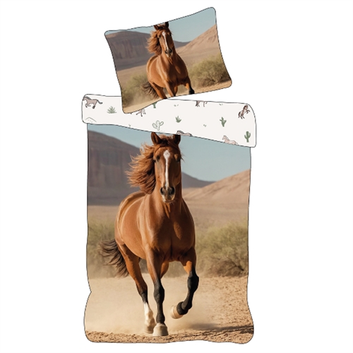 Forside » Sengetøj » Børne sengetøj » Børne sengetøj 140x200 cm Heste sengetøj 140x200 cm - Vendbart sengesæt med en flot brun hest - 100% blødt bomulds sengelinned Licens 199,95DKK På lager Trustpilot Antal Læg i kurv Se mere fra: Licens Artikelnummer: 2433-1 Læs vores sengetøjsguide Se vores store udvalg af lagner Se vores store udvalg af dyner 140x200 Har du spørgsmål til produktet? Høj åndbarhedBlødt og lækkert bomuldOEKO-TEX® certificeret Dynebetræk: 140x200 cm Pudebetræk: 60x63 cm Materiale: 100% bomuld Farve: Brun Vævning: 220TC (Thread count = antal tråde pr. kvadrattomme) Motiv: Vendbar - Forside med en brun hest, bagside med all-over print af heste og ikoner Lukning: Dyne med knapper og pudebetræk med overlap Vask: 60° Tørretumbling: Ja Tåler strygning: Ja Certificering: STANDARD 100 by OEKO-TEX® (17.HPK.23879 Hohenstein). Din garanti for at produktet er fri for sundhedsskadelig kemi. Sengesæt i 100% blød bomuld, med en flot, brun hest. Produceret med lette og åndbare bomuldstråde som giver sengesættet en følelse af blødhed, der gør at dynen føles dejlig for dit barn at sove med. Et slidestærkt sengesæt med høj åndbarhed og absorberingsevne, som vil hjælpe med at gøre sovetid til en rar oplevelse. Drøm dig ud på prærien med dette flotte heste sengetøj. Sengesættet er vendbart, med et sødt design af en stor, brun hest på forsiden og et all-over print af heste og ikoner på bagsiden. Det er altid en god ide at gøre brug af barnets interesser, hvis man ønsker at skabe et tryggere og mere spændende sovemiljø til sit barn. Sengesættet er produceret i 100% blød bomuld som gør sættet slidestærkt og med høj åndbarhed. Den rene bomuldskvalitet giver et lækkert og blødt sengesæt, der er med til at fremme en sovekomfort for barnet. Bomuldssengetøj kan vaskes ved 60° i vaskemaskinen, som er også et med til at holde et et højt hygiejne niveau. Sengetøjet er yderligere fremstillet med OEKO-TEX certificeret, hvilke er din garanti for at sættet er fri for skadelig kemi. Gå på udkig efter favoritterne og meget mere, i vores store udvalg af tilbehør til børneuniverset For barnet bør sengen være et trygt sted og alle elementerne skal til sammen skabe bløde og dejlige omgivelser for barnet at finde ro i. Brug derfor gerne barnets interesser, til at skabe et trygt soverum for barnet. Hos os kan du finde et stort udvalg af tilbehør til sengen og børneværelset, lige fra lagner til dyner, puder, sengetøj og meget mere, og massere af produkter med alle børnenes favoritter på. Alt sammen elementer som kan være med til at skabe det rette sove miljø og værelse til dit barn. Her kan du finde lækre og bløde kvalitets lagner Tilbage til Børne sengetøj 140x200 cm