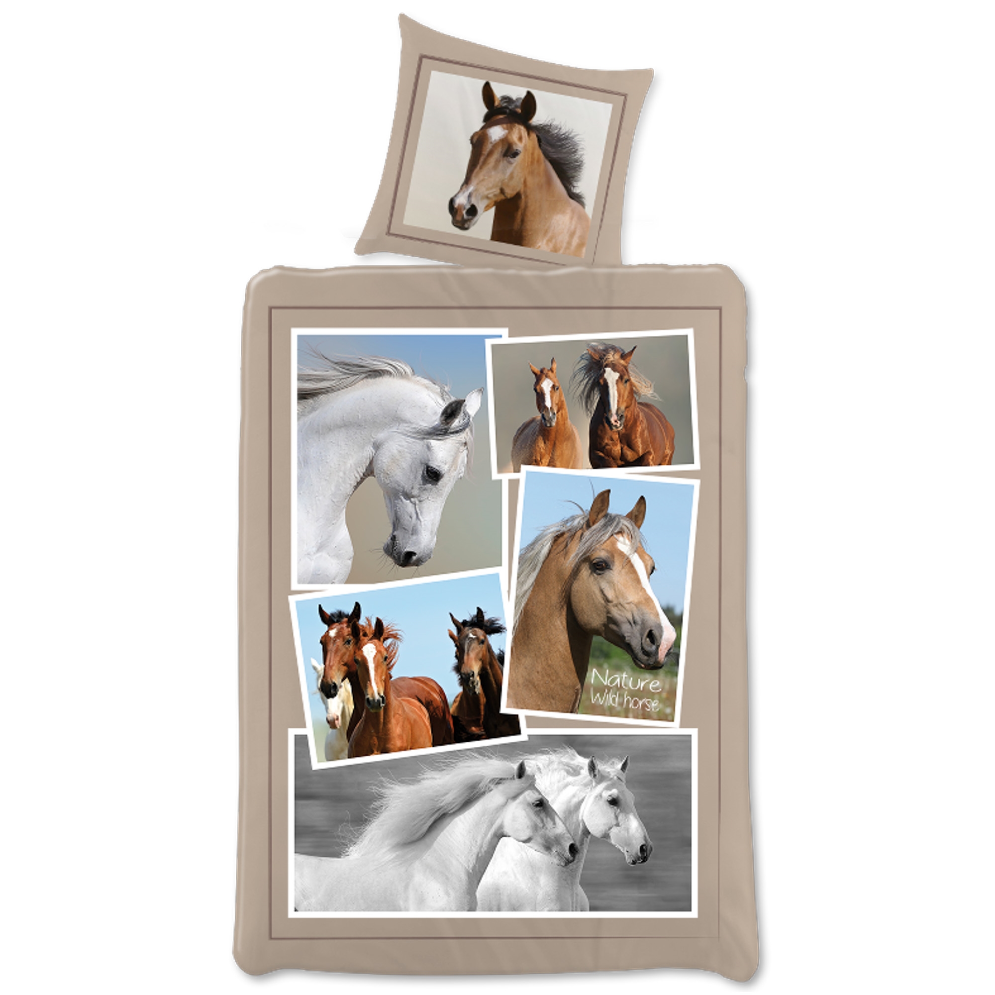 Forside » Sengetøj » Børne sengetøj » Børne sengetøj 140x200 cm Heste sengetøj 140x200 cm - Heste sengetøj med små billeder - 2 i 1 design - Dynebetræk i 100% bomuld Licens 169,95DKK På lager Trustpilot Antal Læg i kurv Se mere fra: Licens Artikelnummer: 21164-1 Læs vores sengetøjsguide Se vores store udvalg af lagner Se vores store udvalg af dyner 140x200 Har du spørgsmål til produktet? Høj åndbarhedBlødt og lækkert bomuldOEKO-TEX® certificeret Dynebetræk: 140x200 cm Pudebetræk: 60x63 cm Materiale: 100% blød bomuld Farve: Brun og hvid Motiv: Heste Design: Vendbar - Forside med heste billeder, bagside med all-over print af heste Lukning: Dyne med knapper, pudebetræk med overlap Vask: 60° Tørretumbling: Ja Tåler strygning: Ja Certificering: STANDARD 100 by OEKO-TEX® (1976-303). Din garanti for at produktet er fri for sundhedsskadelig kemi. Sengetøj med et skønt motiv af heste og bagside med all-over print. Det bløde sengesæt produceret i 100% bomuld er både åndbart og absorberende, og med god sovekomfort. Et slidstærkt bomulds børnesengesæt, som gør børneværelset lidt mere spændende. Flot sengetøj med hestemotiver. Sengesættet er vendbart med forskellige motiver på hver side. På den ene side er der motiver af forskellige heste omgivet af flotte billederammer. Vender du sengesættet om, får du en side med silhuetter af heste. Enhver hesteglad glad pige eller dreng vil nyde at putte sig under dette sengesæt. Sengesættet er produceret i 100% blød bomuld som gør sættet slidestærkt og med høj åndbarhed. Den rene bomuldskvalitet giver et lækkert og blødt sengesæt, der er med til at fremme en sovekomfort for barnet. Bomuldssengetøj kan vaskes ved 60° i vaskemaskinen, som er også et med til at holde et et højt hygiejne niveau. Sengetøjet er yderligere fremstillet med OEKO-TEX certificeret, hvilke er din garanti for at sættet er fri for skadelig kemi. Gå på udkig efter favoritterne og meget mere, i vores store udvalg af tilbehør til børneuniverset For barnet bør sengen være et trygt sted og alle elementerne skal til sammen skabe bløde og dejlige omgivelser for barnet at finde ro i. Brug derfor gerne barnets interesser, til at skabe et trygt soverum for barnet. Hos os kan du finde et stort udvalg af tilbehør til sengen og børneværelset, lige fra lagner til dyner, puder, sengetøj og meget mere, og massere af produkter med alle børnenes favoritter på. Alt sammen elementer som kan være med til at skabe det rette sove miljø og værelse til dit barn. Her kan du finde lækre og bløde kvalitets lagner Tilbage til Børne sengetøj 140x200 cm