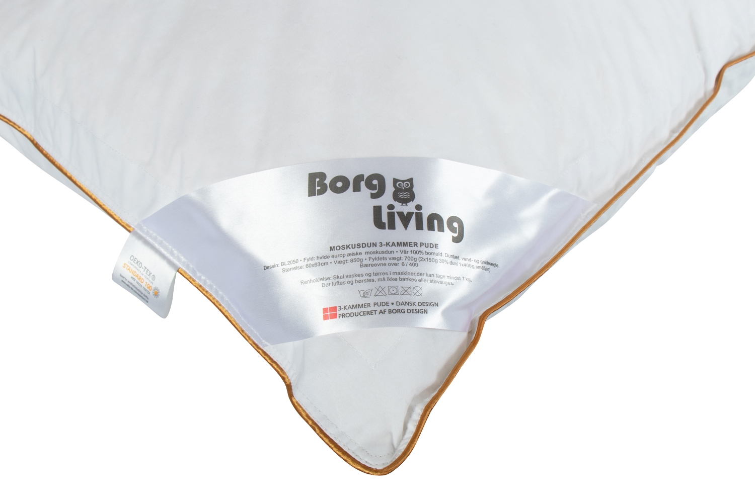 Forside » Hovedpuder » Størrelse » Puder 50x60 cm (Svensk) Hovedpude med moskusdun - 50x60 cm - Mellem pude - Årspuden 2024 - 3 kamre - Borg Living Årspuden Spar57% Borg Living 699,95299,95DKKSpar 400,- På lager Trustpilot Antal Læg i kurv Se mere fra: Borg Living Artikelnummer: BL2050-11 - aarspuden Læs vores pudeguide Læs om vedligeholdelse af dyner og puder Se vores store udvalg af pudebetræk Har du spørgsmål til produktet? Årspuden 20243 kamre moskuspude - MellemBæreevne: Over 6 Størrelse: 50x60 cm Type: Mellem hovedpude Konstruktion: 3 kamre pude Brand: Borg Living - Årspuden Fyldvægt: 580g Yderkammer: 2x125g 100% moskusdun Fyld i kernen: 330g andedun/småfjer Bæreevne: Yderkammer: Over 9 (Gammel målemetode) 600 (Ny målemetode) Kernen: Over 6 (Gammel målemetode) 350 (Ny målemetode) Bolster: 100% duntæt bomulds cambric. Vask: 60° (Vigtigt at anvende Enzymfrit vaskemiddel) Tørretumbling: Skal tørretumbles med tørrebolde Garanti: 2 år Certificering: STANDARD 100 by OEKO-TEX® (HKX 19275) Se vores store udvalg af sengetøj i 140x200 cm her Årspuden 2024 Hovepuden er konstrueret med 3 kamre. De to yderste er fyldt med bløde edderduns lignende moskusdun, imens kammeret i midten er fyldt med støttende småfjer. Med en 3-kammer pude får din nakke og skuldre den støtte, du behøver for at ligge behageligt hele natten uden at skulle bakse med puden for at få den til at ligge ordentligt. Pga. sin særlige konstruktion holder puden nemlig sin form. Årsdynen & Årspuden fra Borg Living Borg Living lægger stor vægt på at levere kvalitetsprodukter med maksimal komfort. Derfor har de gennem året samlet erfaringer og udviklet et unikt, begrænset årsudvalg af dyner og puder med fokus på førsteklasses materialer og ekstra komfort. Hvis du mangler et lækkert helårs dyne- og pudessæt, er årsmodellerne et oplagt valg. Se udvalget af Årsdynen og Årspuden 2024 Det danske brand Borg Living producerer eksklusive serier af dyner, puder og boligtekstiler til dit hjem. Brandet som er etableret i 2013 og er bl.a. kendt for deres nytænkning indenfor kvalitet og design. Borg Livings fantastiske produkter, bidrager til en optimal og behagelig nattesøvn samt udsmykker dit hjem med moderne og lækkert boligtilbehør. Tilbage til Puder 50x60 cm (Svensk)