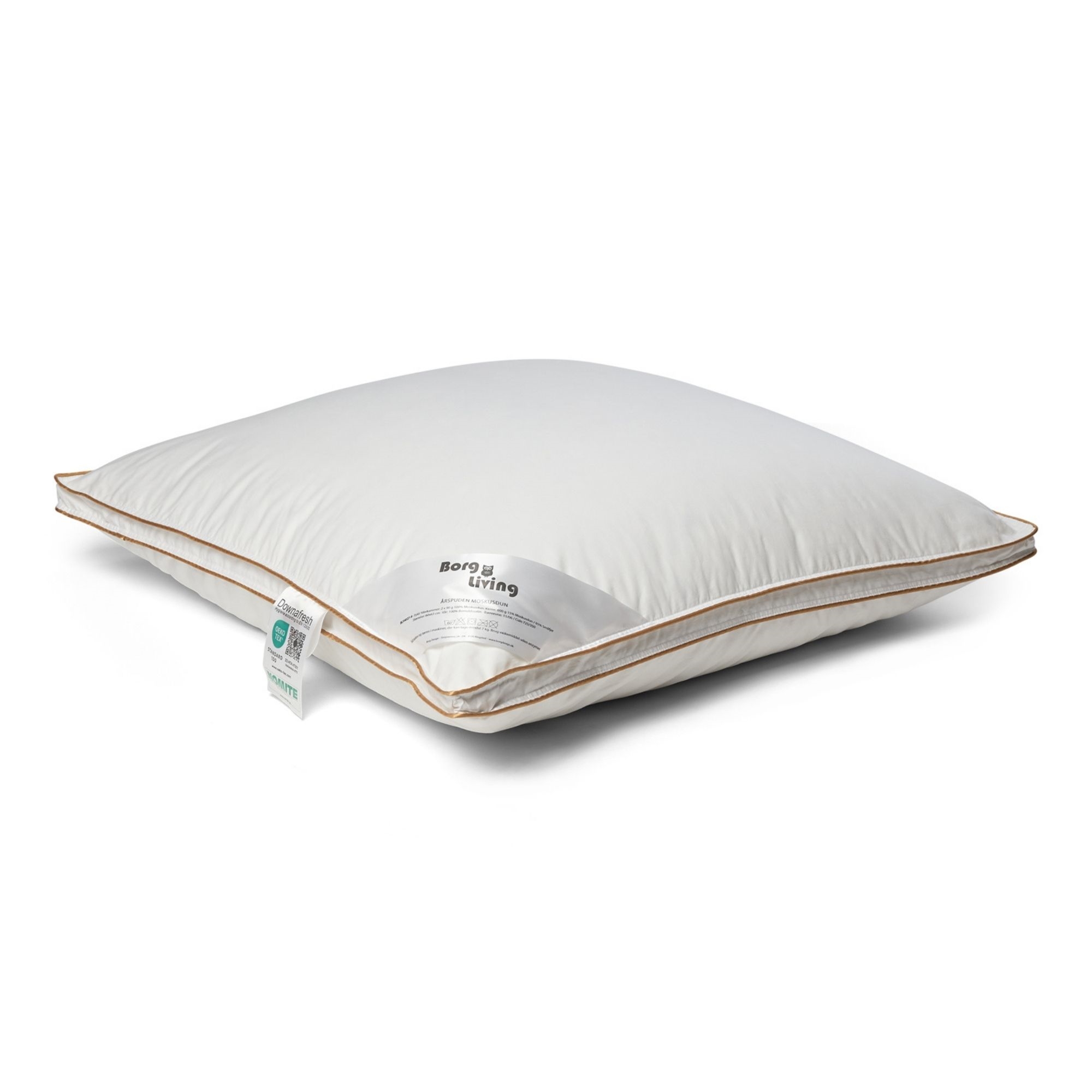 Puden er velegnet til dig, som ønsker en god støtte, men som samtidigt gerne selv også vil kunne forme puden under hovedet. Moskuspuden er med et blødt og lækkert betræk af 100% bomuldssatin - hvilket gør puden velegnet til allergikere, da satinen er så tætvævet at der ikke kan trænge støvmider ind i puden.