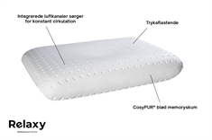 Forside » Hovedpuder Hovedpude med trykaflastende memory skum - Relaxy Heaven pude Spar30% Relaxy 999,95699,95DKKSpar 300,- Gratis fragt på denne vareFå på lager Trustpilot Antal Læg i kurv Se mere fra: Relaxy Artikelnummer: REL1001 Læs vores pudeguide Læs om vedligeholdelse af dyner og puder Se vores udvalg af pudebetræk til Relaxy Har du spørgsmål til produktet? Optimal støtte til hoved og nakkeVelegnet til allergikereVelegnet til dig, der sover på ryggen eller siden Størrelse: 55x37x11 cm Konstruktion: Kerne af CosyPUR® memoryskum Brand: Relaxy Fyld: CosyPUR® memoryskum Ydre betræk: 65 % polyester, 35 % viskose Indre betræk: 100 % bomuld Vask: 40° skåne (Kun betrækket må vaskes) Tørretumbling: Nej Certificering: STANDARD 100 by OEKO-TEX®. Heaven puden er udviklet til dig, der sover på ryggen eller siden. Den har en unik-formet kurve i midten, som giver optimal støtte til hoved og nakke. Det bløde og trykaflastende viscoelastiske skum i puden, tilpasser sig din soveposition og sikrer dig de bedste forhold under søvnen samtidig med at den sørger for at både nakke og skuldre kan slappe helt af. Det bløde og trykaflastende CosyPUR® skum tilpasser sig din soveposition og giver ideel støtte under søvnen. Pudens integrerede luftkanaler sørger for konstant cirkulation, som reducerer varmen og forbedrer dit soveklima. Nem at rulle sammen og tage med. Der medfølger en praktisk taske. Se vores udvalg af pudebetræk til Relaxy puderne her Tilbage til Hovedpuder