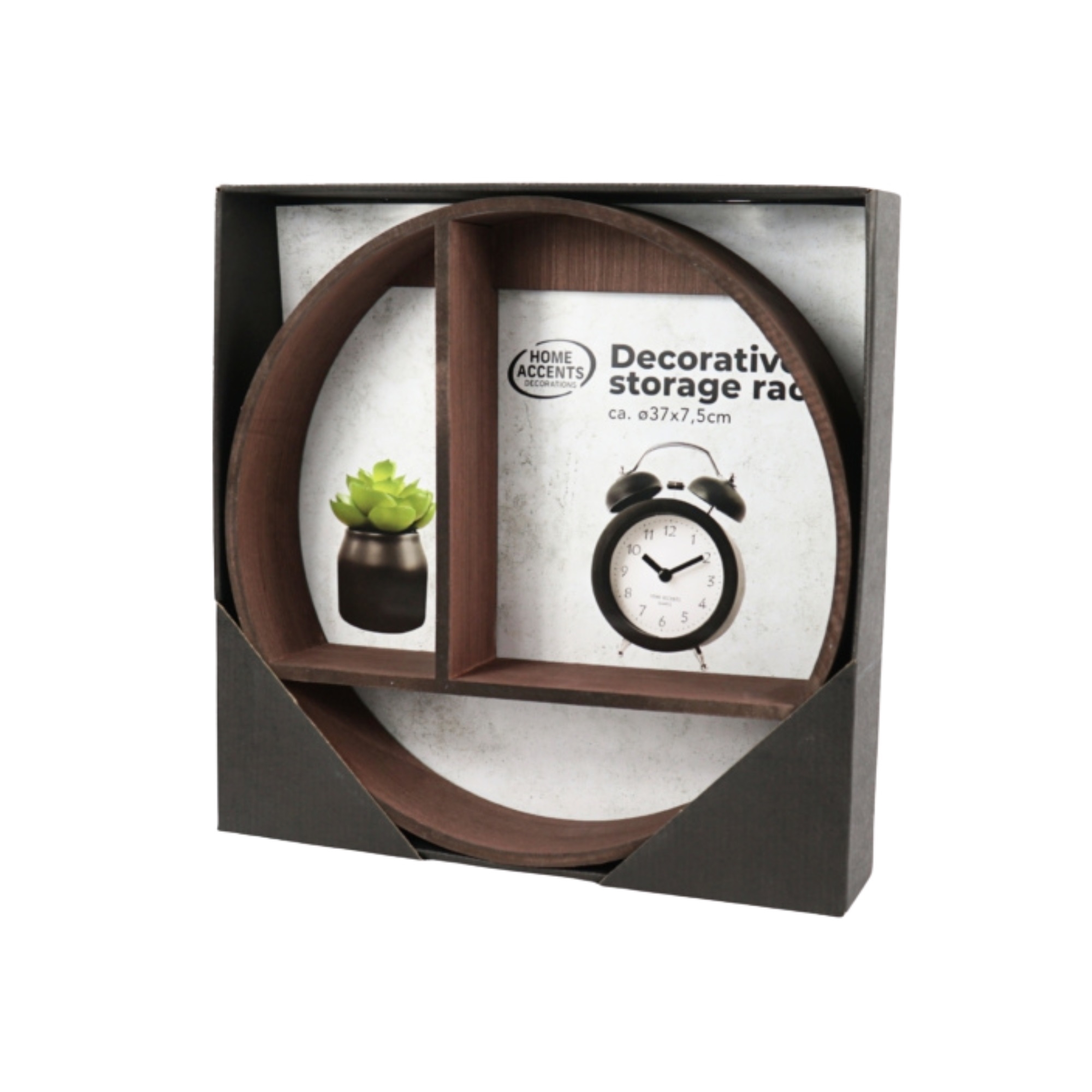 Med en størrelse på Ø37 cm og en dybde på 7,5 cm er hylden ideel til små dekorationer, planter, billeder eller andre personlige elementer, der fortjener en flot plads på væggen.