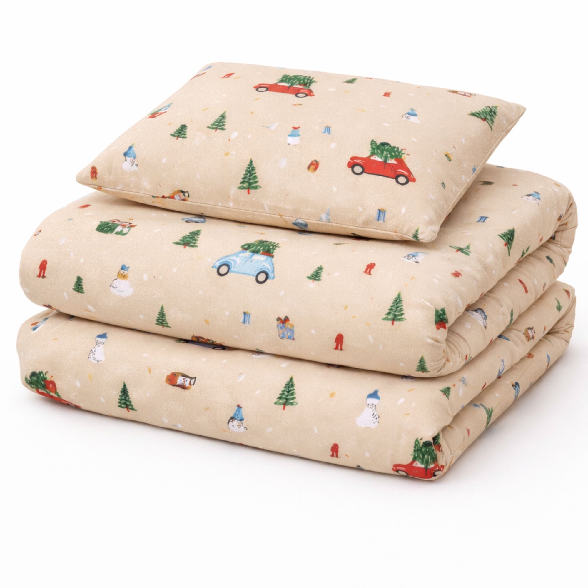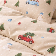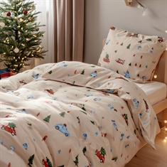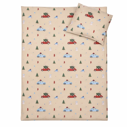 By Mats julesengetøj 100x140 cm - beige med biler og juletræer