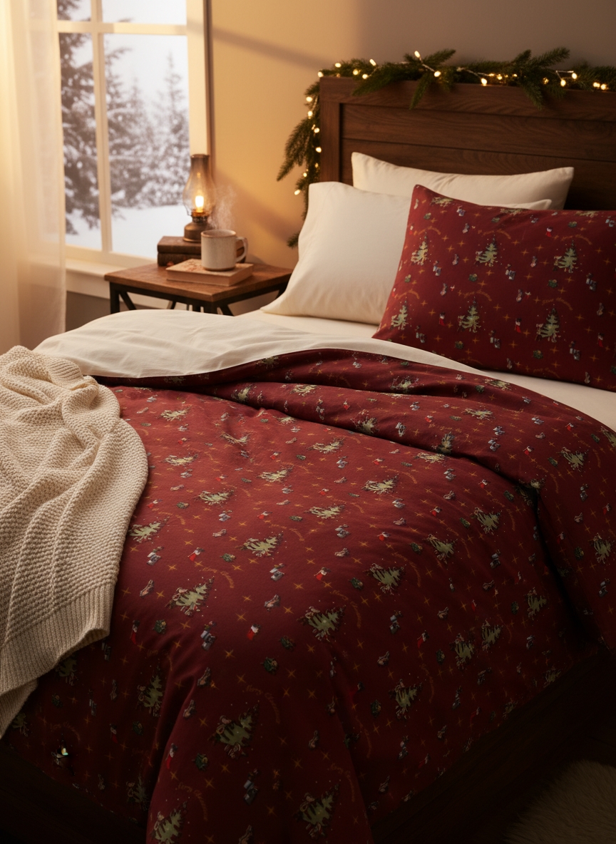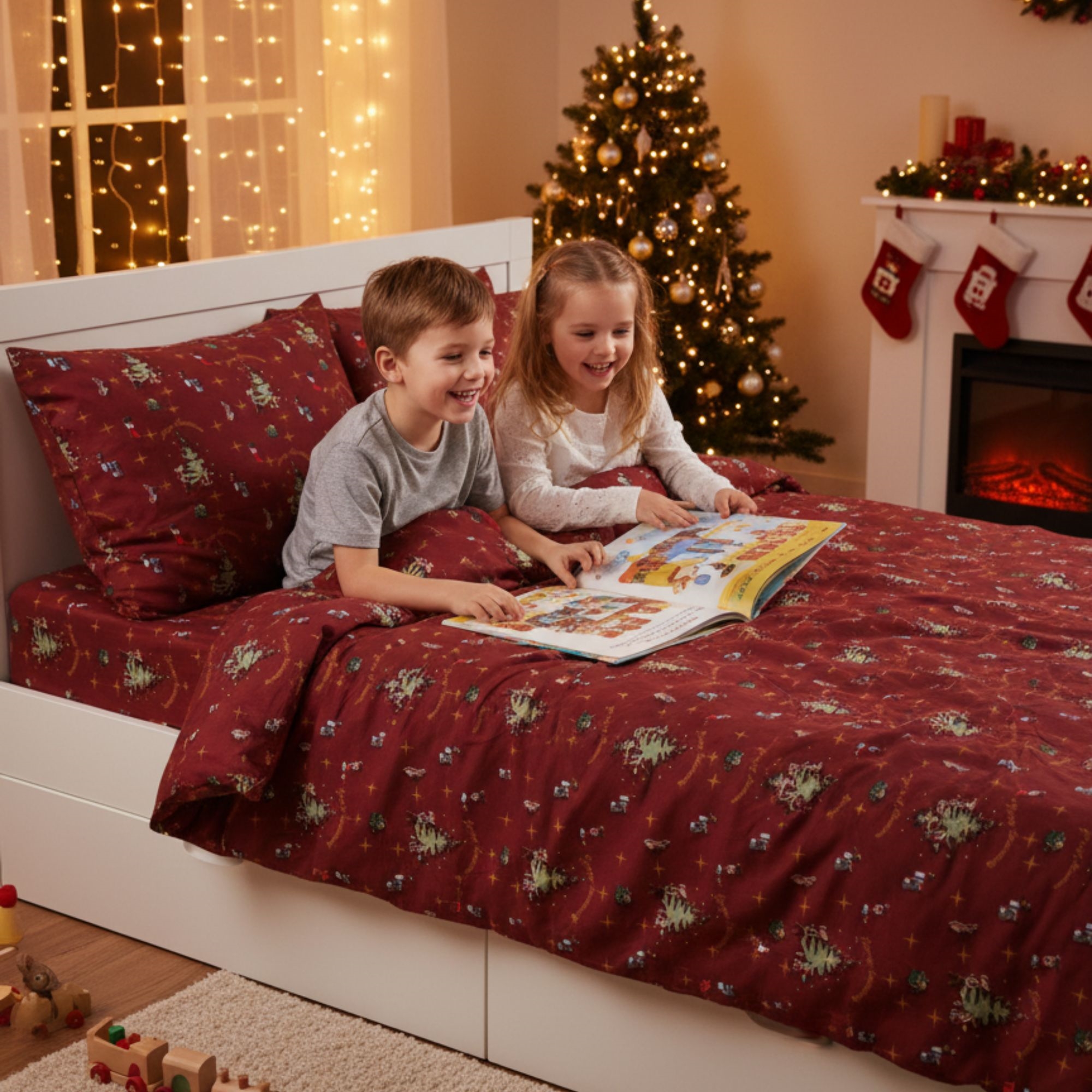 Gør december ekstra hyggelig med dette stemningsfulde julesengetøj fra By Mats. Det røde design med julemus som pynter op til jul skaber en magisk julestemning på børneværelset og gør sengetid til noget helt særligt i juletiden.