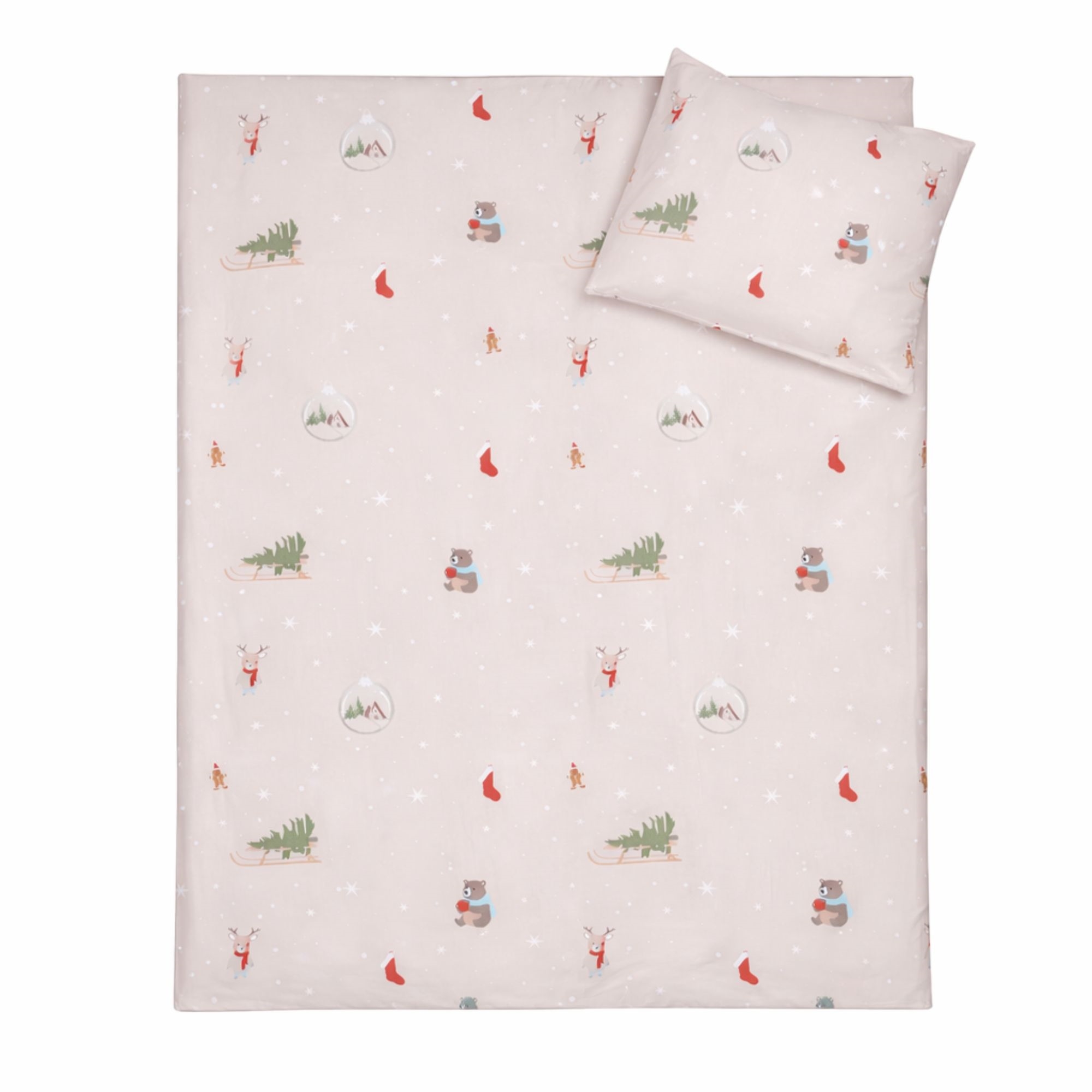 Gør december ekstra hyggelig med dette stemningsfulde julesengetøj fra By Mats i babys størrelse 70x100 cm. Det beige design med juleikoner skaber en magisk julestemning på børneværelset og gør sengetid i tremmesengen ekstra tryg og hyggelig i juletiden.