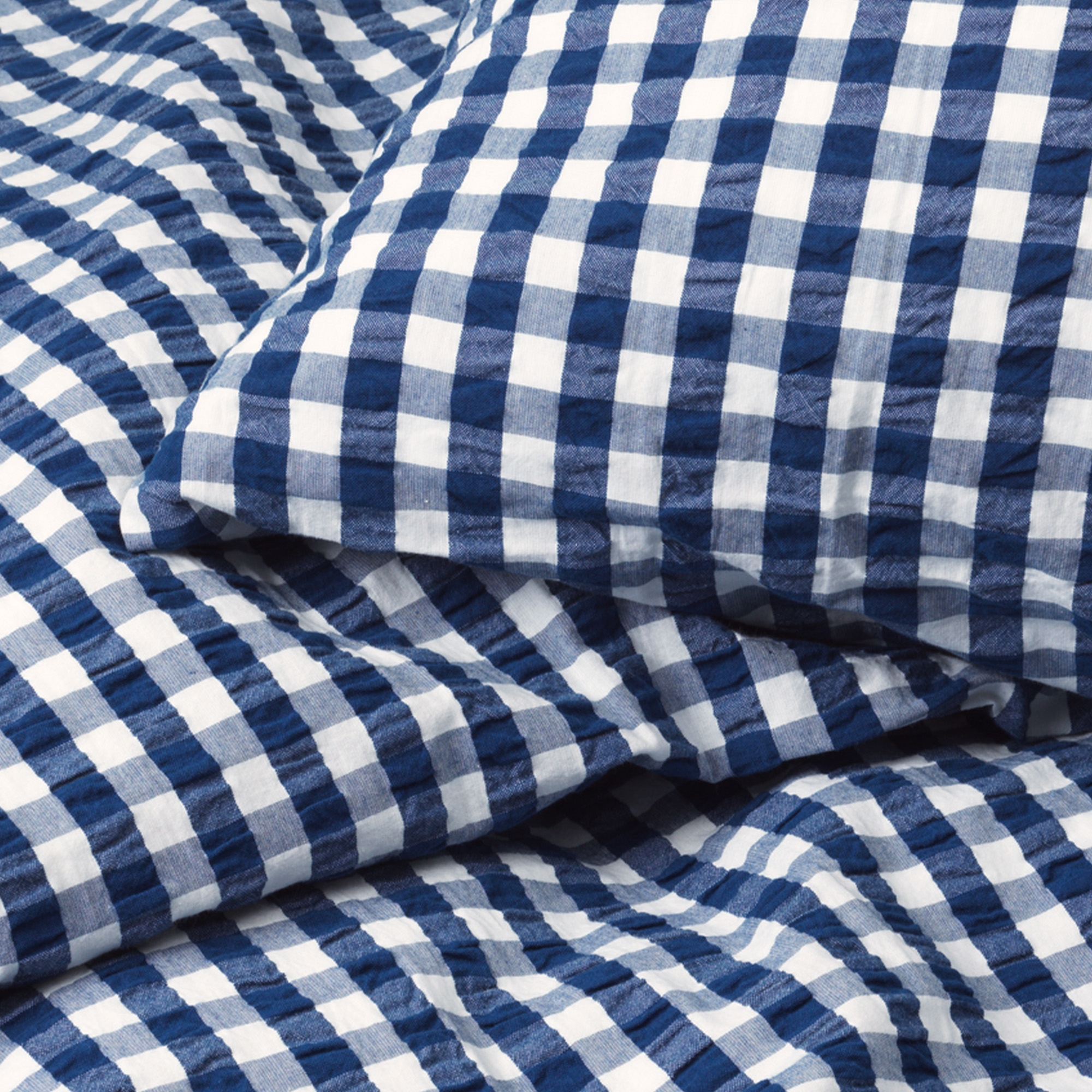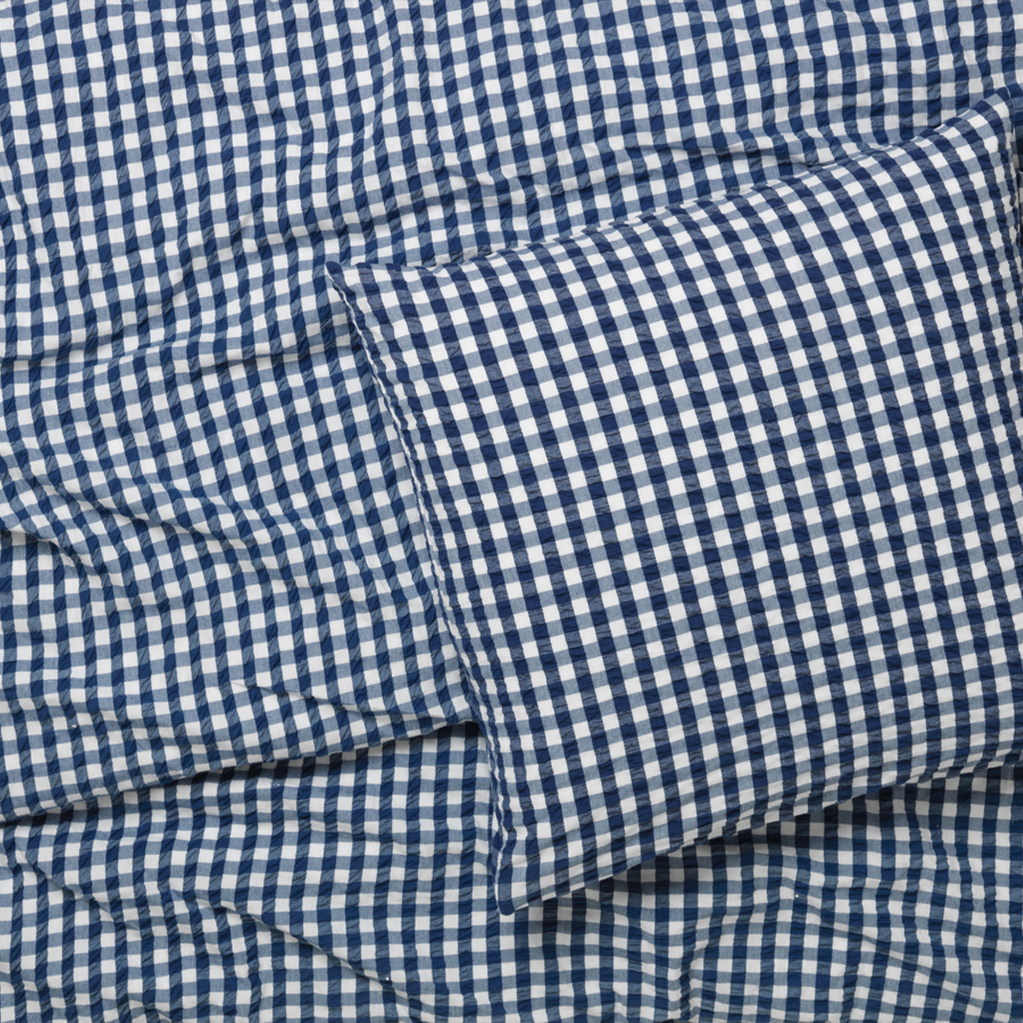 Det bløde bomuld kombineret med den krøllede struktur giver en unik følelse af luksus. Samtidig er sengetøjet praktisk i hverdagen, da det ikke kræver strygning og holder sit flotte udtryk vask efter vask. De fine tern i mørkeblå giver et roligt og stilrent look, der passer ind i både moderne og klassiske soveværelser.