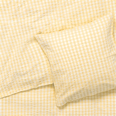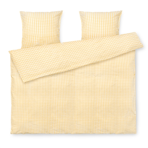 Det bløde bomuld kombineret med den krøllede struktur giver en unik følelse af luksus. Samtidig er sengetøjet praktisk i hverdagen, da det ikke kræver strygning og holder sit flotte udtryk vask efter vask. De fine tern i gul giver et roligt og stilrent look, der passer ind i både moderne og klassiske soveværelser.
