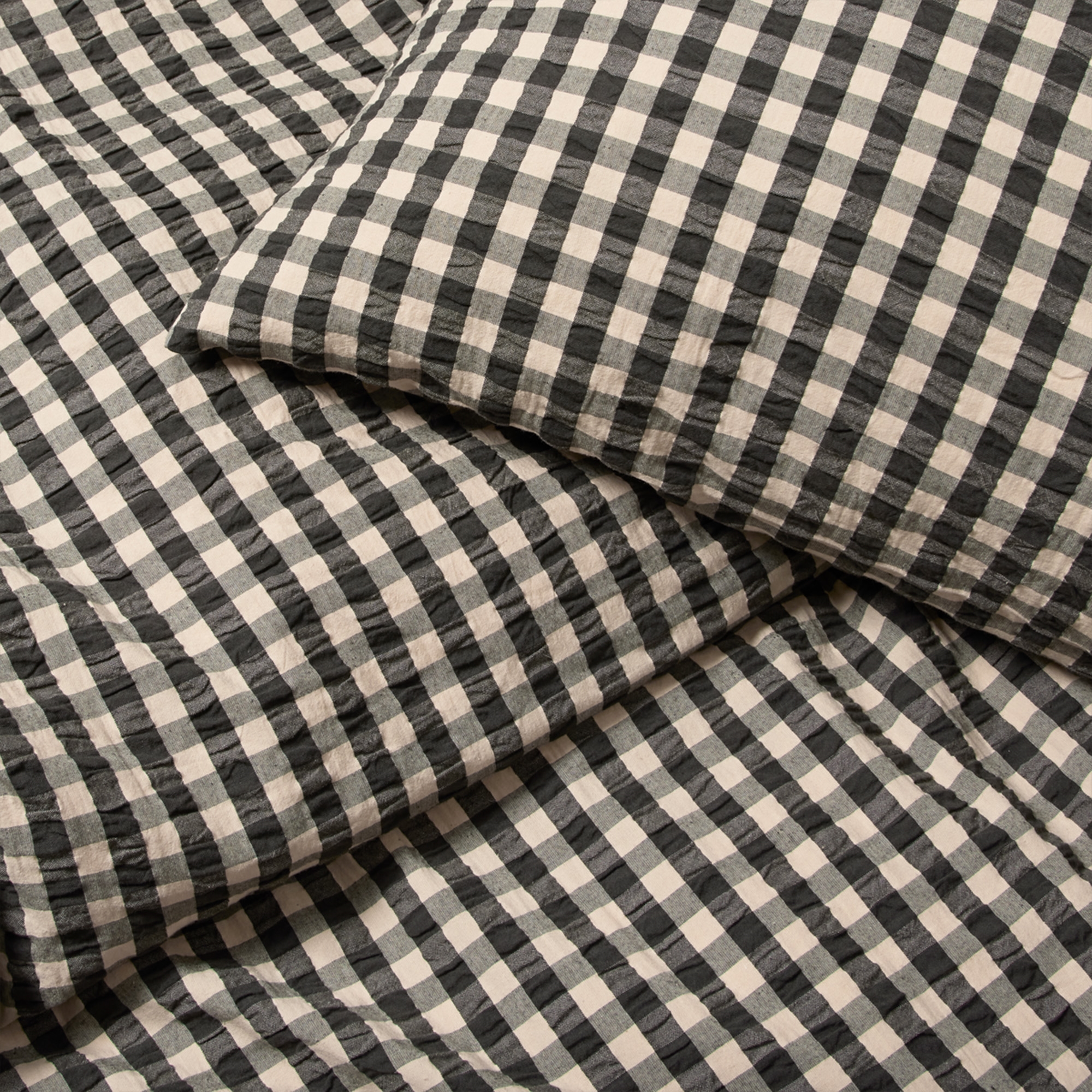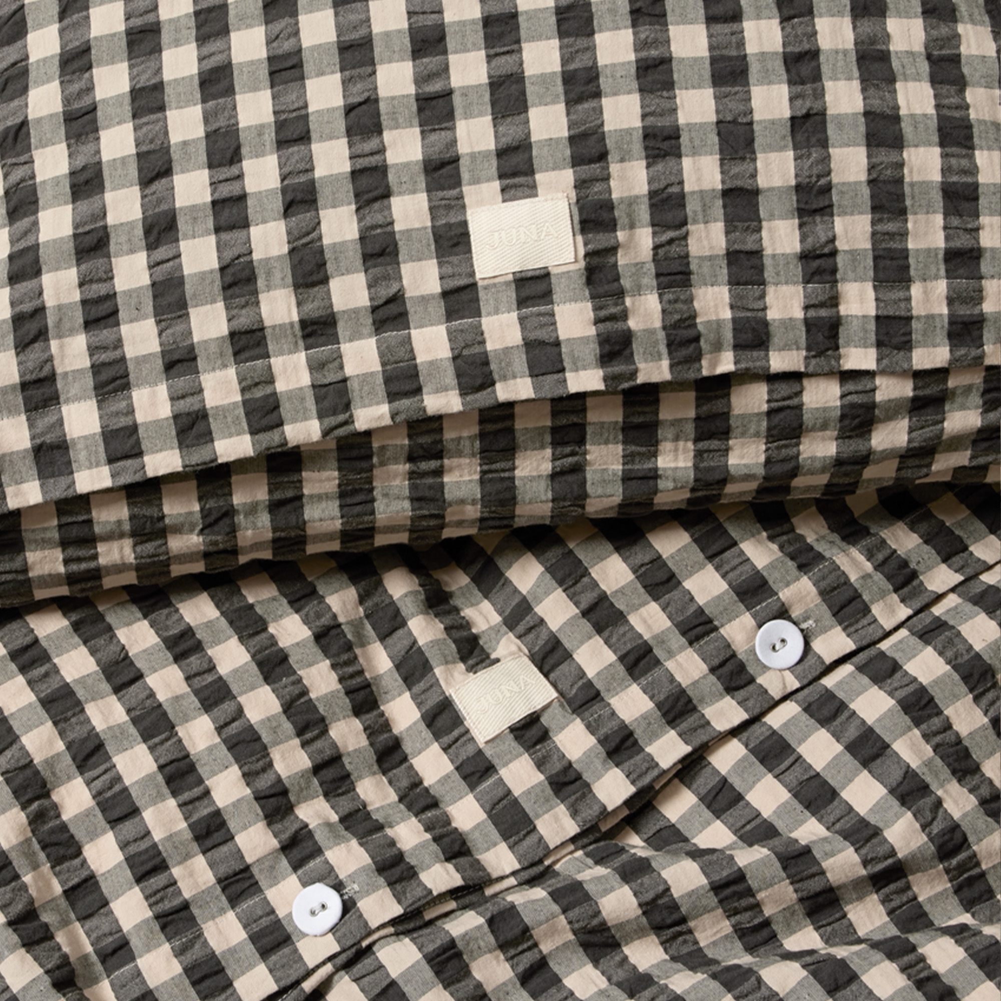 Det bløde bomuld kombineret med den krøllede struktur giver en unik følelse af luksus. Samtidig er sengetøjet praktisk i hverdagen, da det ikke kræver strygning og holder sit flotte udtryk vask efter vask. De fine tern i sort giver et roligt og stilrent look, der passer ind i både moderne og klassiske soveværelser.