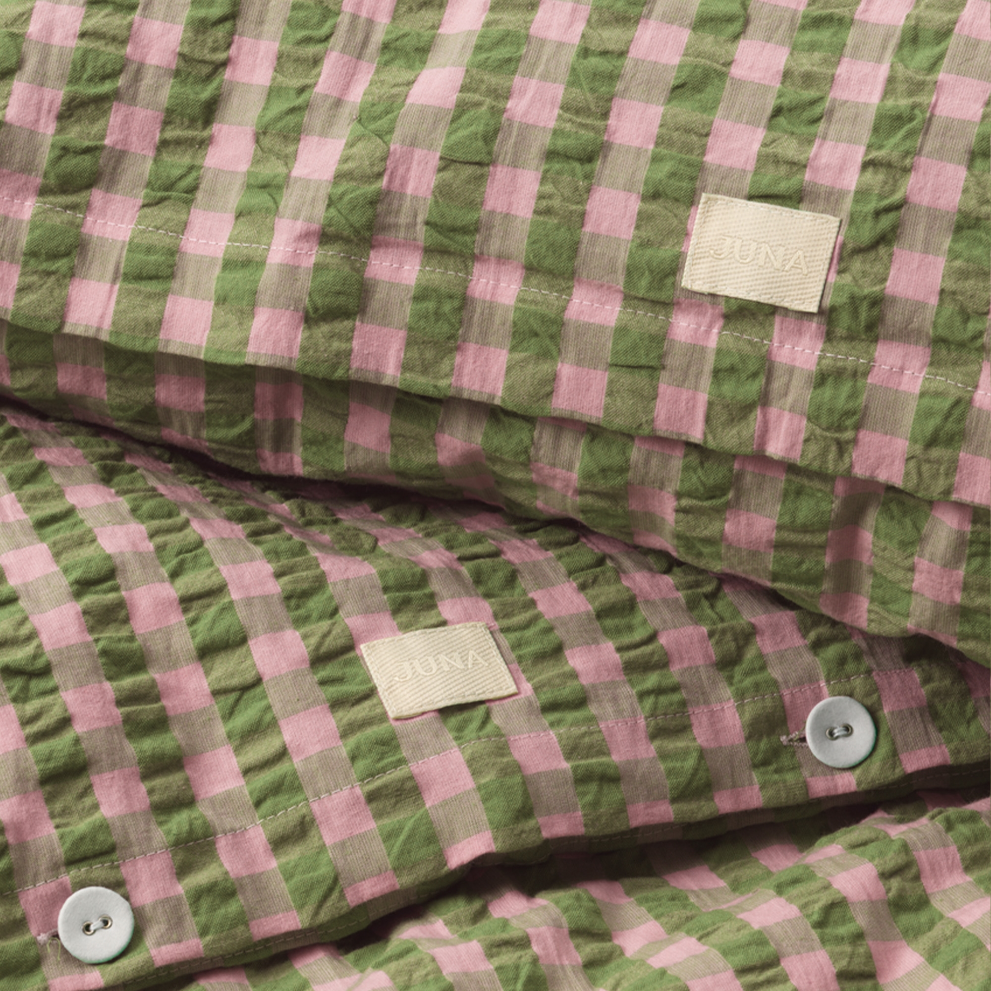 JUNA er en del af Rosendahl Design Group og repræsenterer boligtekstiler med fokus på både æstetik, kvalitet og ansvarlig produktion. Brandet kombinerer klassisk skandinavisk design med nutidige trends og skaber tekstiler, der bringer personlighed og varme ind i hjemmet. JUNA er særligt kendt for sit farverige og legende univers, hvor mønstre, striber og grafiske udtryk går hånd i hånd med bløde materialer og høj komfort. Med et stærkt fokus på miljøet anvender JUNA certificerede materialer og ansvarlige produktionsmetoder, så du kan vælge tekstiler med omtanke.