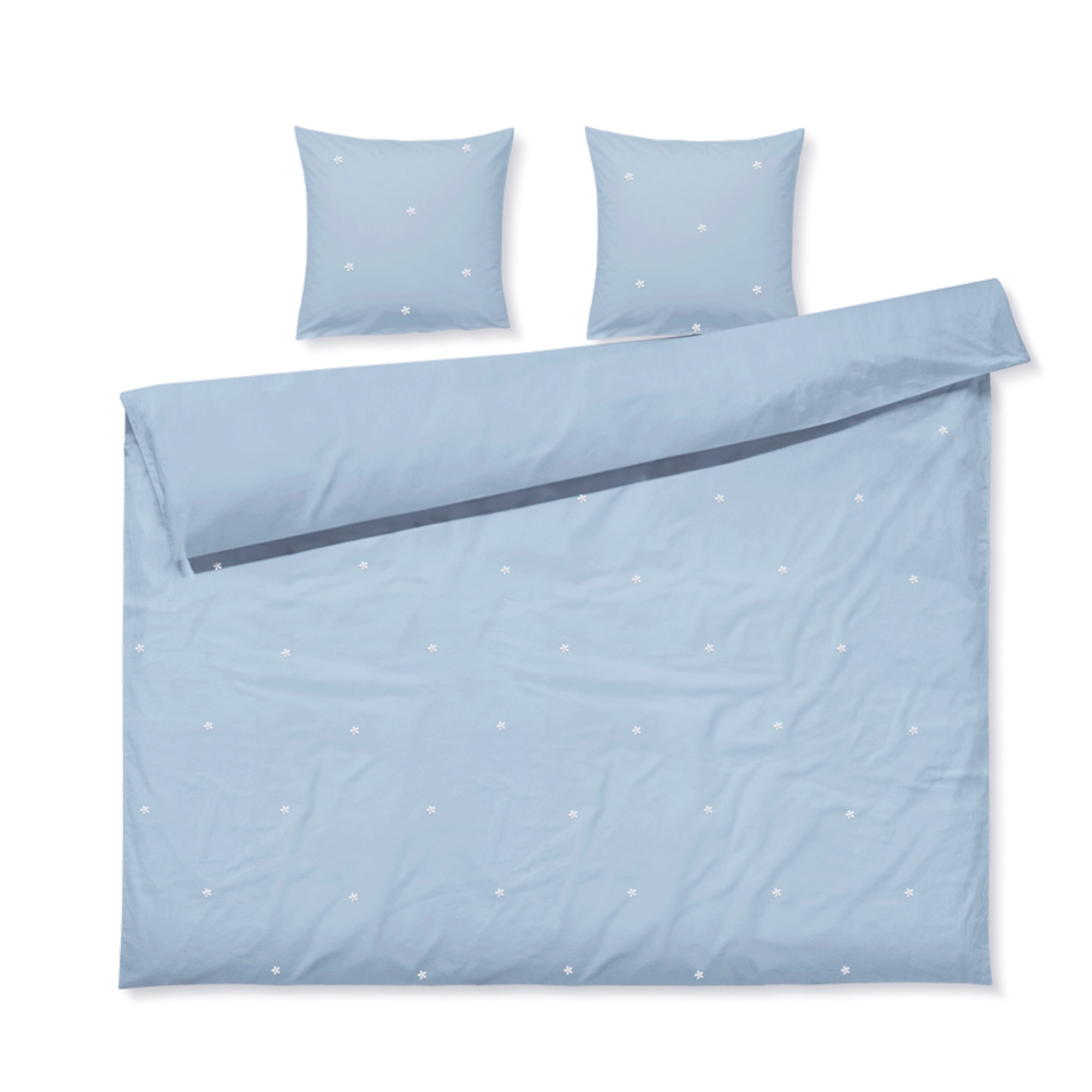 Daisy dobbeltsengetøj i økologisk bomuld - blå med broderede blomster