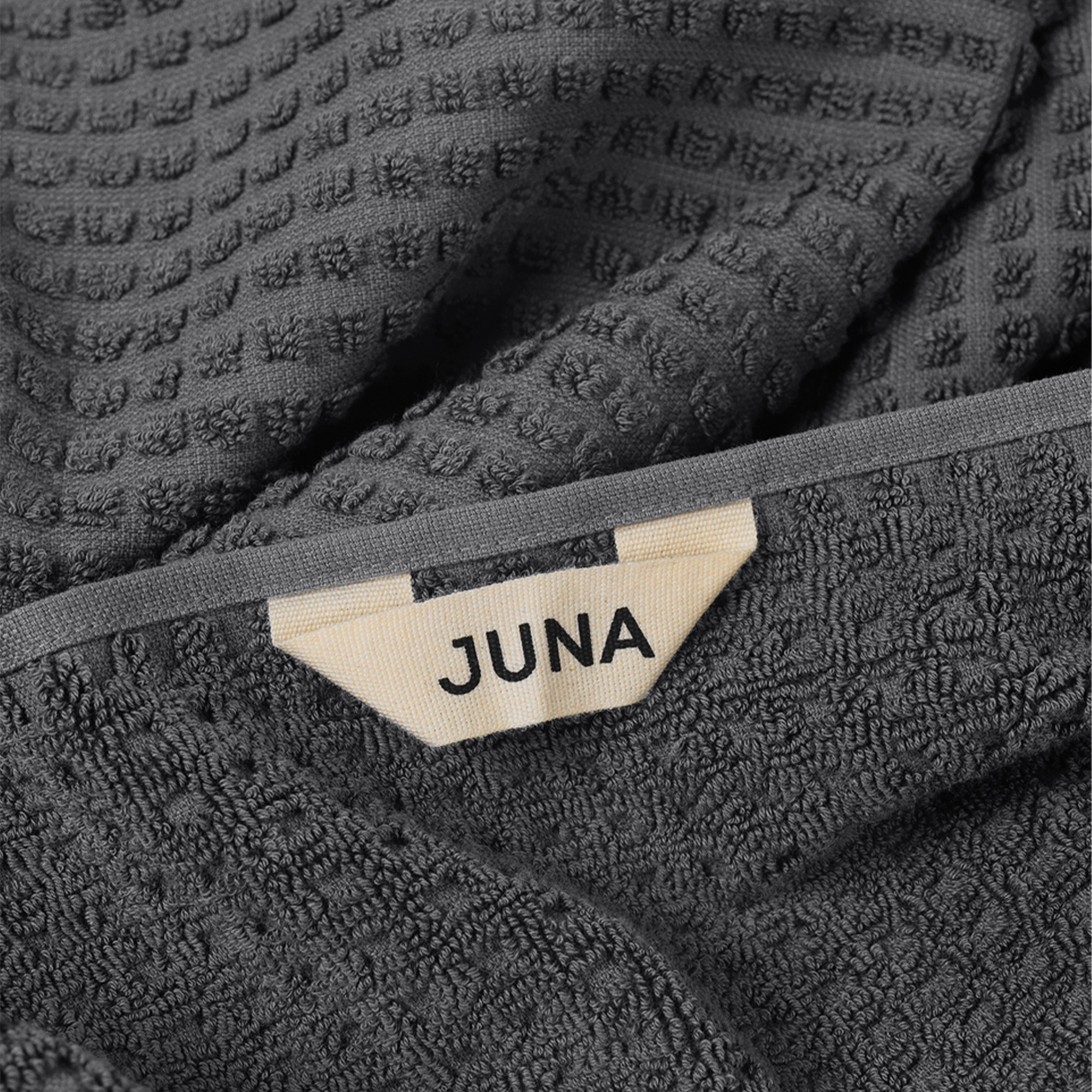 Forkæl dig selv med luksus i hverdagen med dette smukke Check håndklæde fra JUNA. Den fine mørkegrå farve og det diskrete firkantede mønster skaber et roligt og stilrent udtryk, der passer perfekt ind i det moderne badeværelse.