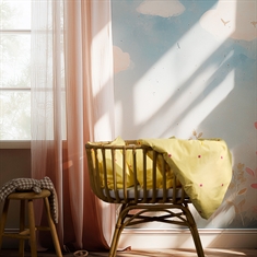 Den fine percalevævning giver en let og behagelig tekstur, samtidig med at materialet er slidstærkt og holder sig flot vask efter vask. De små broderede blomster skaber et hyggeligt og roligt udtryk, der passer perfekt ind i ethvert babyværelse.