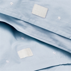 Skab en tryg nattesøvn med dette smukke babysengetøj fra JUNA Daisy serien. Den fine lyseblå farve med broderede blomster giver et tidløst og roligt udtryk. Sengesættet er fremstillet i 100% økologisk bomuld i en eksklusiv percalevævning, som sikrer en blød, glat og åndbar kvalitet - perfekt til babyens sarte hud.