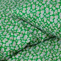 Bomuldssatin er kendt for sin ekstra bløde og glatte struktur, som giver en luksuriøs følelse og gør det endnu mere indbydende at krybe under dynen. Det blomstrede design i grønne nuancer skaber en naturlig og afslappende atmosfære i soveværelset.