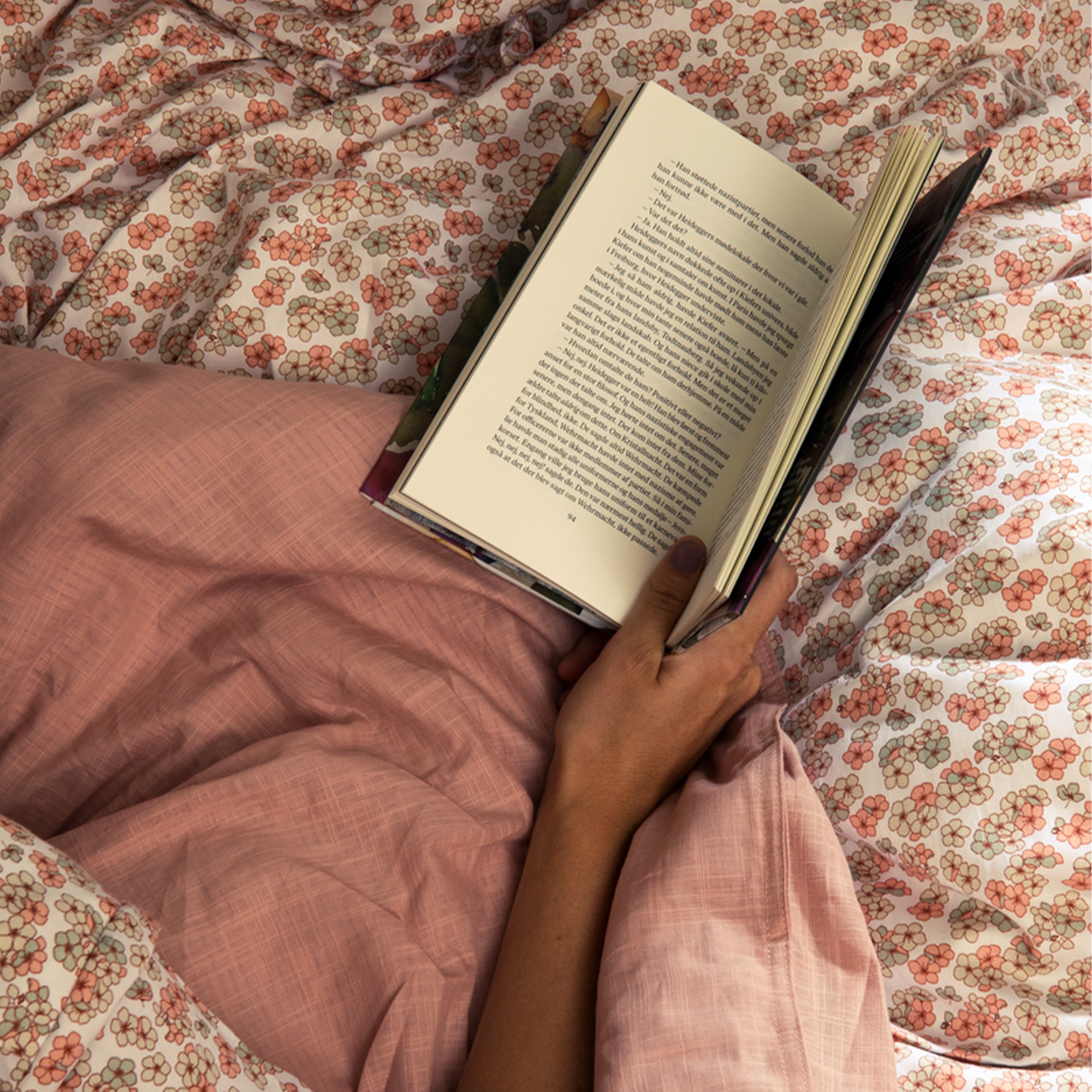 Bomuldssatin er kendt for sin ekstra bløde og glatte struktur, som giver en luksuriøs følelse og gør det endnu mere indbydende at krybe under dynen. Det blomstrede design i grønne nuancer skaber en naturlig og afslappende atmosfære i soveværelset.